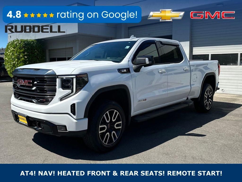 10-Speed Automatic, 4WD, Jet Black Leather. White 2022 GMC Sierra 1500 AT4 4WD 10-Speed Automatic 3.0L I6Odometer is 24180 miles below market average!Ruddell Auto: Trusted on the Peninsula and Western Washington since 1941. We offer shoppers a modern facility, a convenient location in Port Angeles, and a transparent, low-pressure shopping environment, with some of the most knowledgeable and friendly car people on the planet! We offer Lifetime Tire Rotates on most new vehicles see dealer for details. Ask us about our Ruddell ""Best Deal Promise"" - we will beat any deal on a new car or truck or pay you $1000! We sell new Chevrolet and GMC vehicles and offer a great selection used vehicles as well. Our top-rated service department offers Master Certified and GM World-Class Certified Technicians, and our no-appointment-necessary Quick Lube is open five days a week. We have a Kids Play Area, comfortable waiting areas, a putting green, and wi-fi, Come experience difference today - the Ruddell Difference!