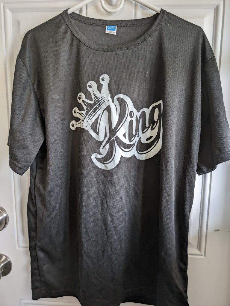 New Mens Size Large 42-44 Black T-Shirt For A "KING". Feels Like A Polyester Like Nylon, No Wrinkle