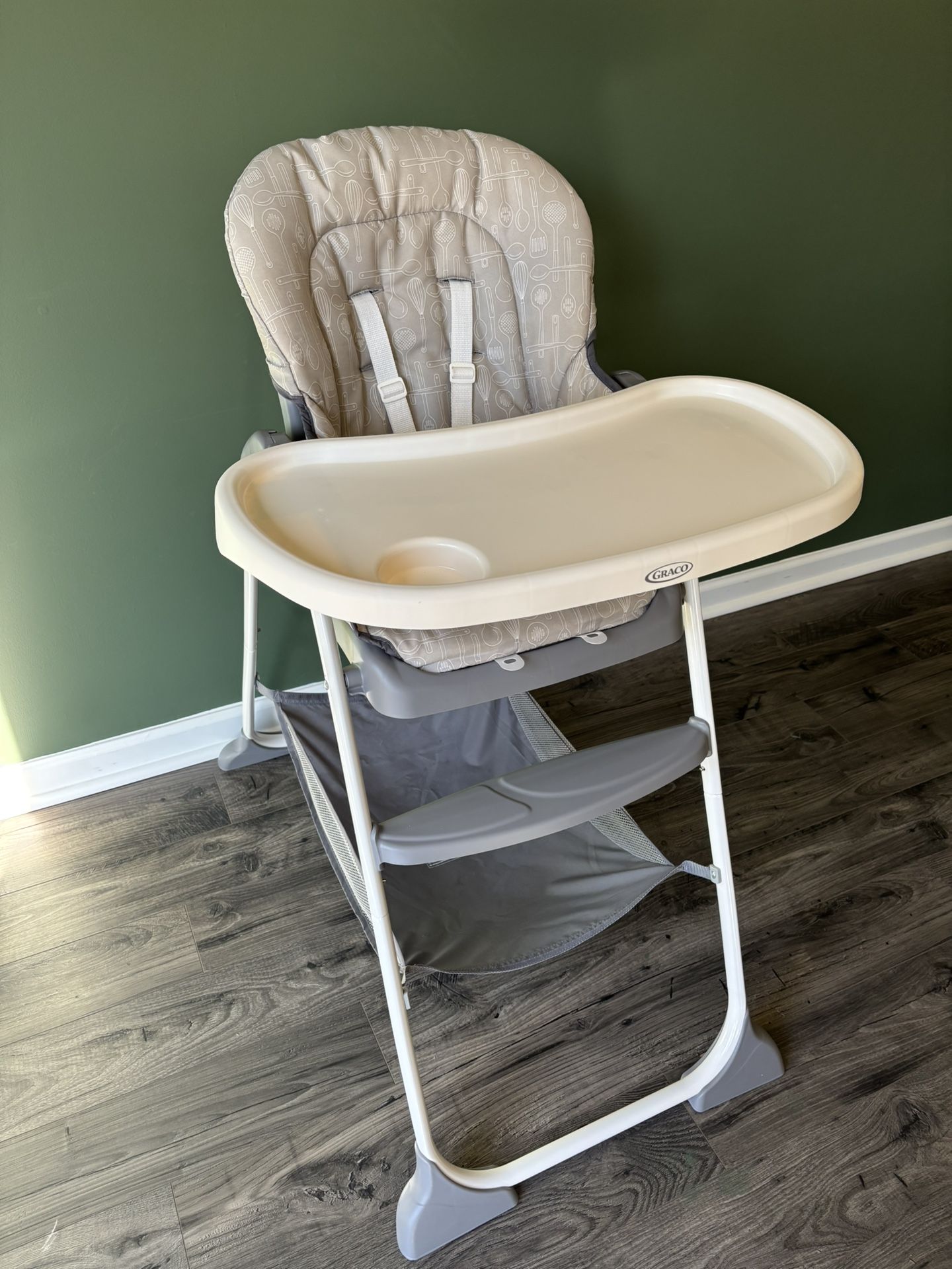 Graco Slim Snacker High Chair, Ultra Slim, Fast-Folding, Multiple Recline Positions, Comfortable Feeding, Whisk
