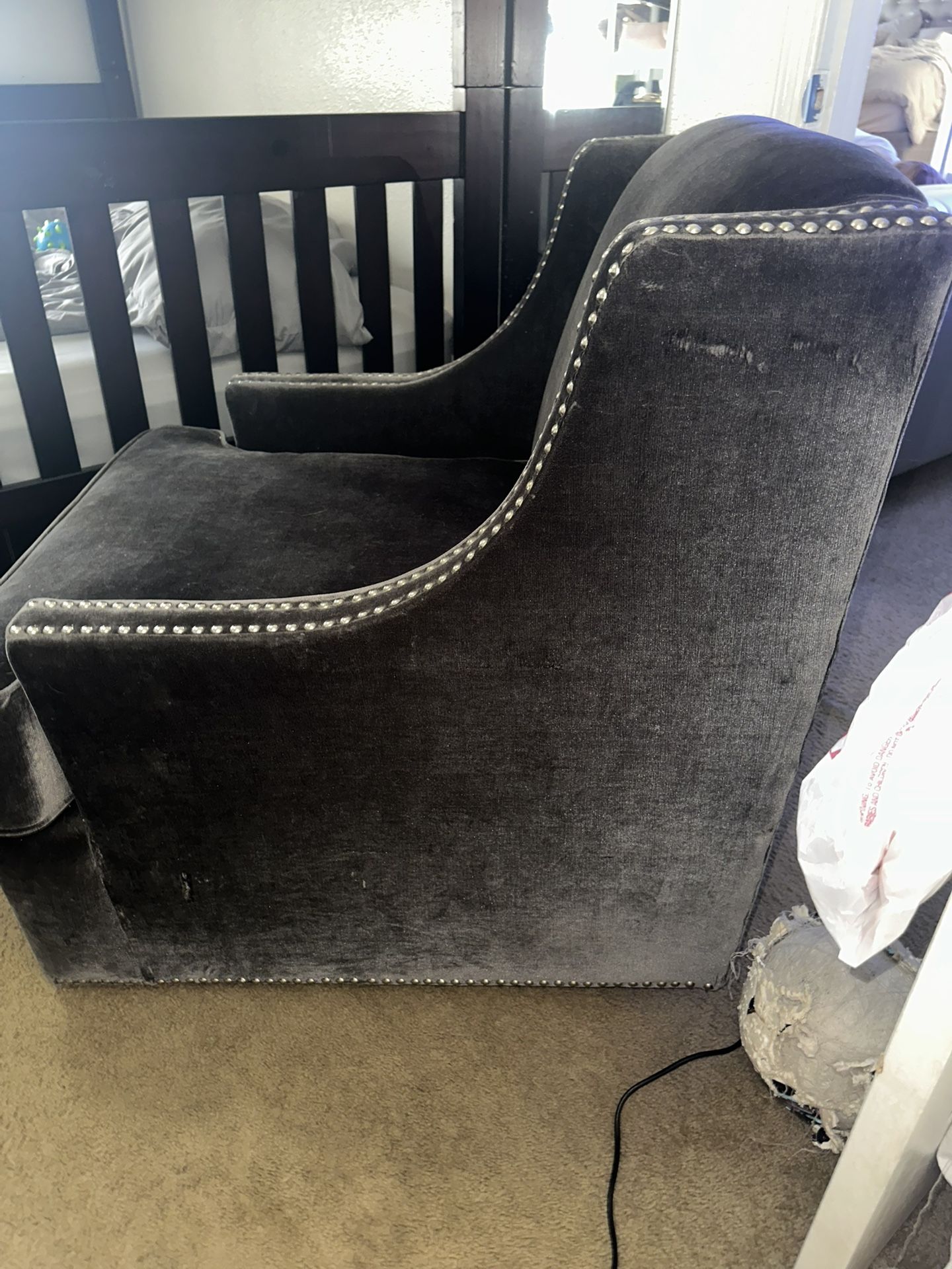 Dark gray color chair that swivels but swivel bar it’s a little off