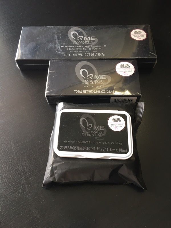 Makeover essentials makeup set Brand new in package Paid $ 100 - classic 10 nighttime storm (10 eye shadows , applicator brush and eye pencil ) in a mirrored tin compact - beauty to go ( 12 eye shadows , 6 lip colors , 2 blushes , brush , pressed powder , applicator , and puff ) In a padded case with magnetic closure and mirror - Makeup remover cleansing cloths ( 20 quantity ) Makeover-essentials.com