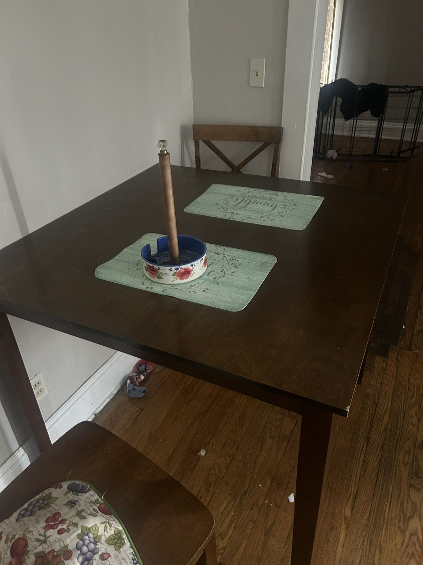 Chairs included one chair seat is like broken lifts up km sure it just needs some screws
