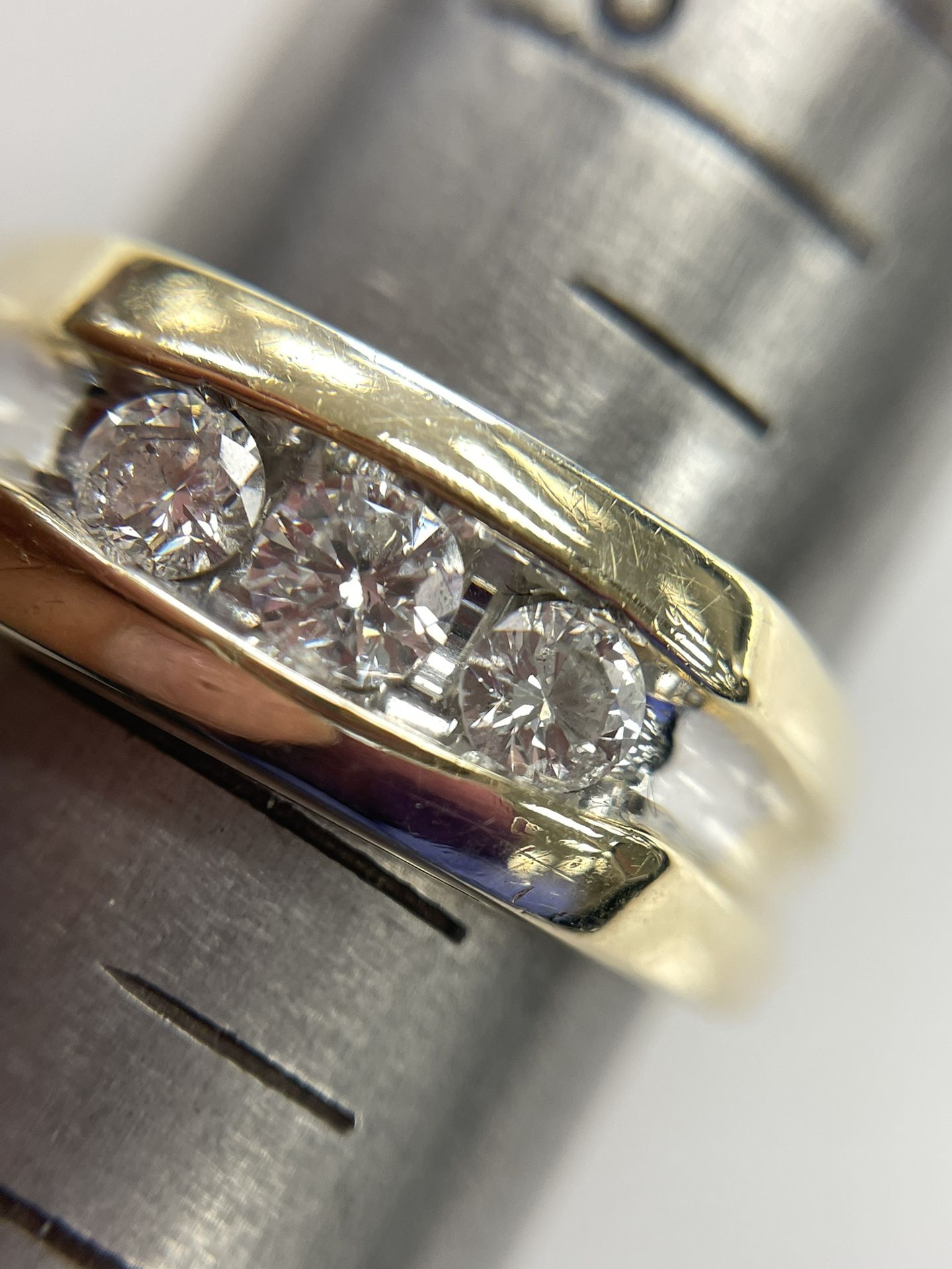 14kt diamond channel set ring 149451-2 4.1 grams Channel set round 2- 15pt 1- 20pt Band about 7.8mm Pickup only Cash only