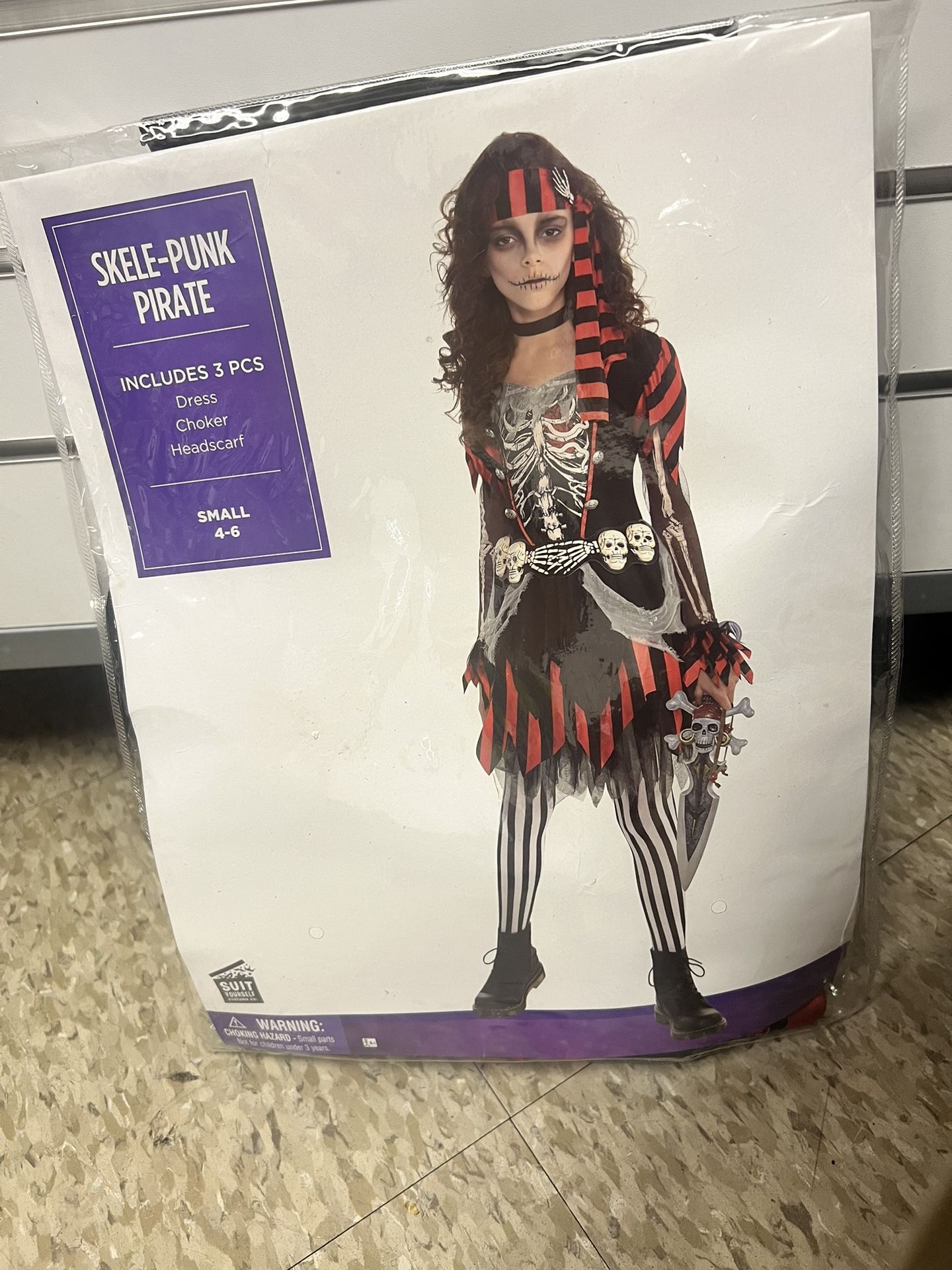 Girls Skele-Punk Pirate Costume Size: Small 4-6 Includes: Dress, Choker, HeadScarf Retail price: $30.00 Pick up in Placentia 92870