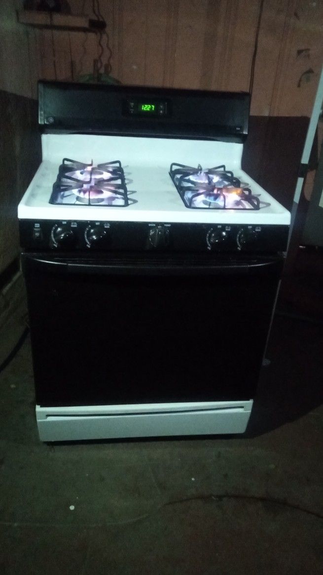 Todo funciona perfectamente,el horno broil reloj y todos los 4 quemadores sirven bien, manguera del gas incluida, y entrega disponible sin costo π con compra al precio completo, Fully working condition all burners oven and clock works fine gas hose included free delivery with full price $180