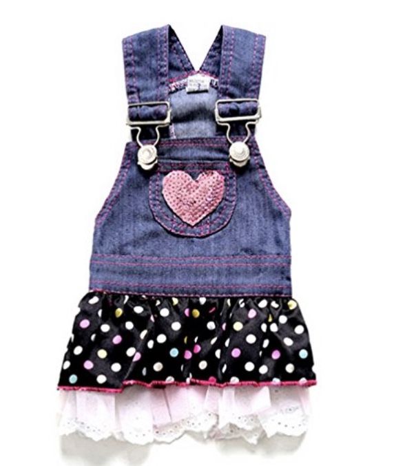 NEW***Dog Dress / Denim / for Small Dogs, Puppies, Cats, Pleated Tiered Skirt Jumper With Pocket / Large