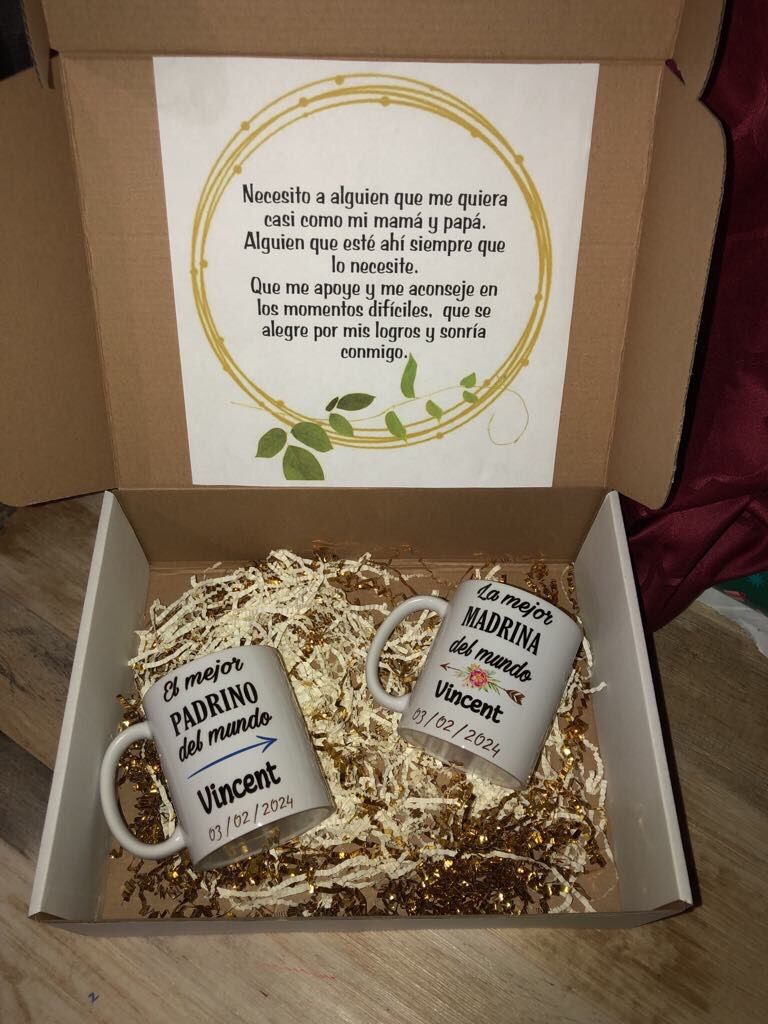 Cajas personalizadas (tazas o termos) para cualquier ocasión, cumpleaños, padrinos, aniversario, etc.