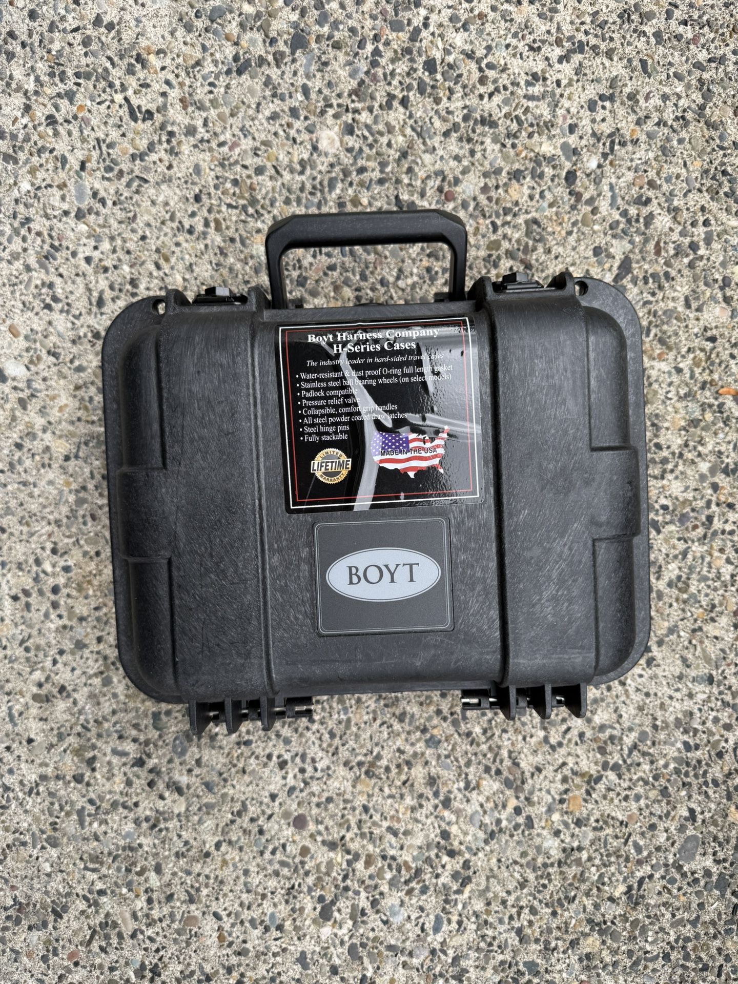 H11 Single HG /Accessory/ A Case BOYT HARNESS COMPANY Description: Made In the USA - Limited Lifetime Warranty Injected Molded with 120D High Impact, Polypropylene Resin Shock Absorbing 3-Piece Foam Interior - Flat Foam Top, Egg Crate Foam Middle (not customizable), and Flat Bottom TSA-Approved - 2 Padlock Compatible Locations for Maximum Security Two Powder Coated Steel Draw Latches Eliminate Accidental Openings During Travel Dustproof O-ring Gasket Forms Barrier Against Dirt & Moisture Steel Hinge Pins Allow for Smooth Open & Close Operation Large Collapsible Handle Pressure Relief Valve Compact Dimensions Meet Standard Airline Requirements External dimensions: 13" x 11" x 6" Internal dimensions: 11" x 8" x 5.25" Weight 4.5 lbs. In fantastic condition. Don’t need anymore.
