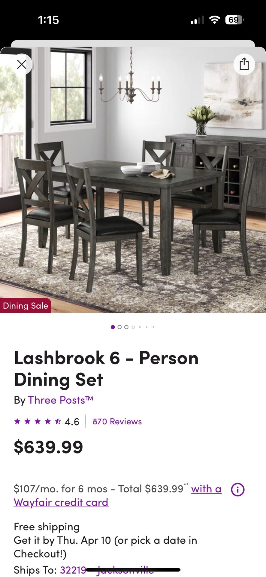 Make a reasonable offer on this Grey dining room table set with 6 chairs bought on Wayfair I don’t want it because the color in person is not the color grey I expected looks more brown to me…it’s still in the box I only took out one piece to see the color of it… delivery available if needed for extra fee