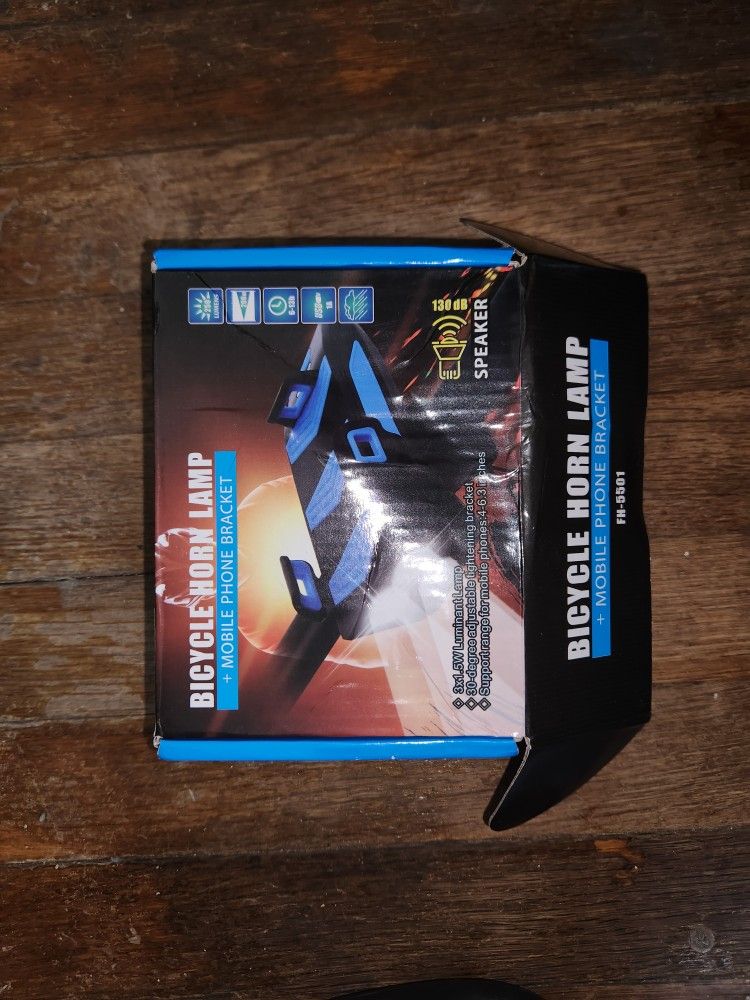New bike light,horn, n cell phone Holder. Come with USB cable to charge.