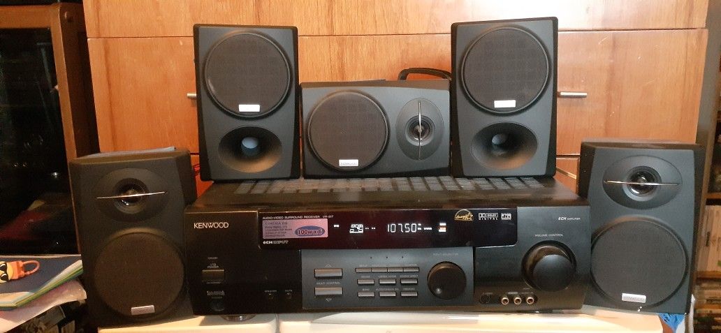 Kenwood receiver, subwoofer and Speakers $120 dlls. Remote control included.