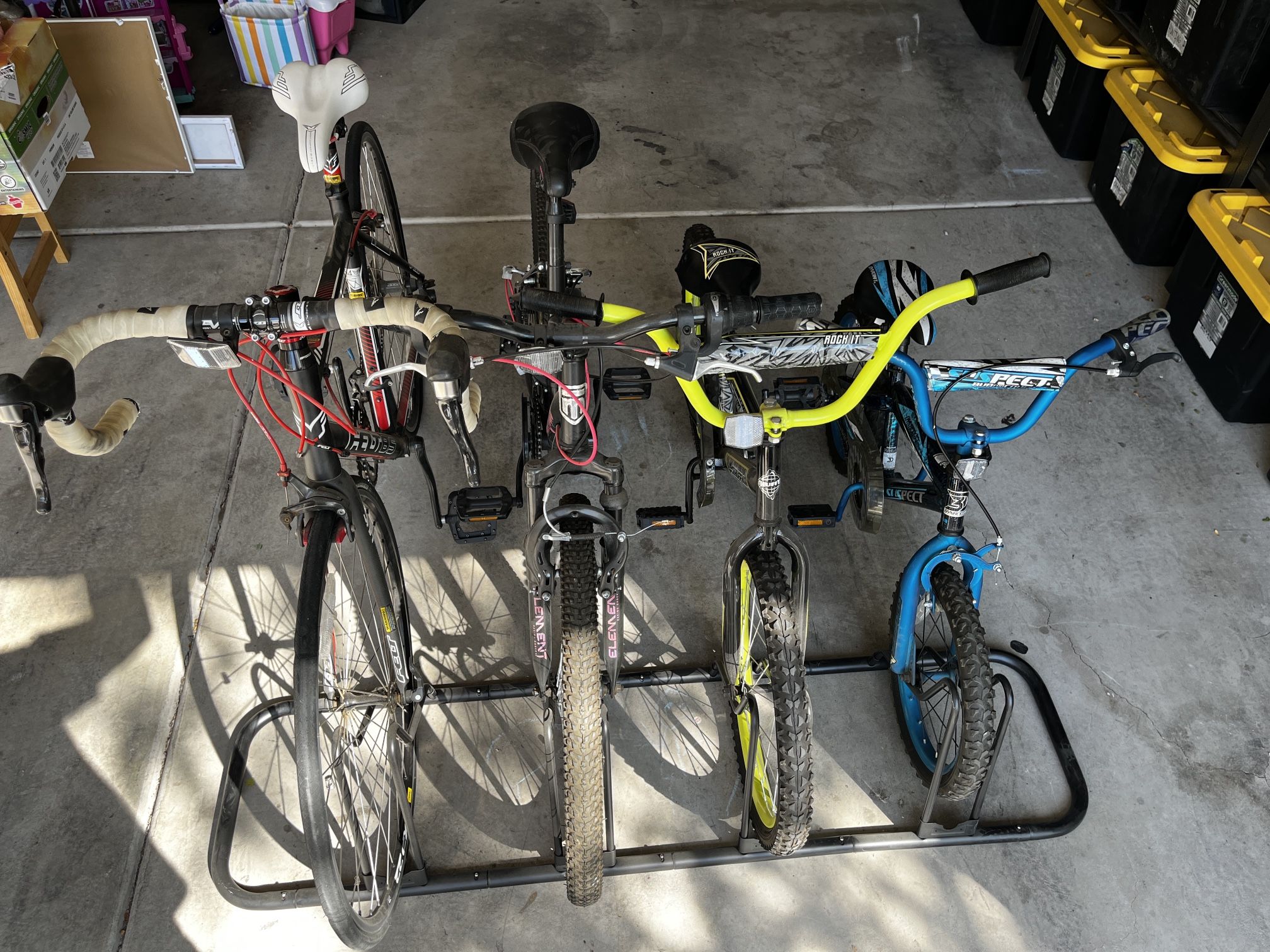 Felt z85, mongoose excursion, huffy rockit 5S20 and dynocraft suspect. Selling as a set. Perfect for the growing family. Comes with extra tubes for the Felt. Asking $400 for all. Includes the bike rack.