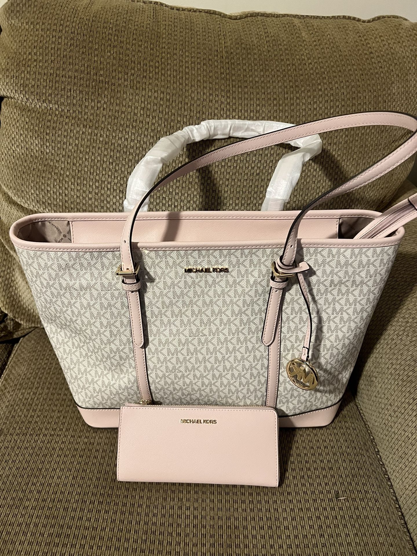 Brand New Michael Kors Large Jet set Logo tote Bag With Matching Wallet. 350.00 for set. Meet in North High Point only