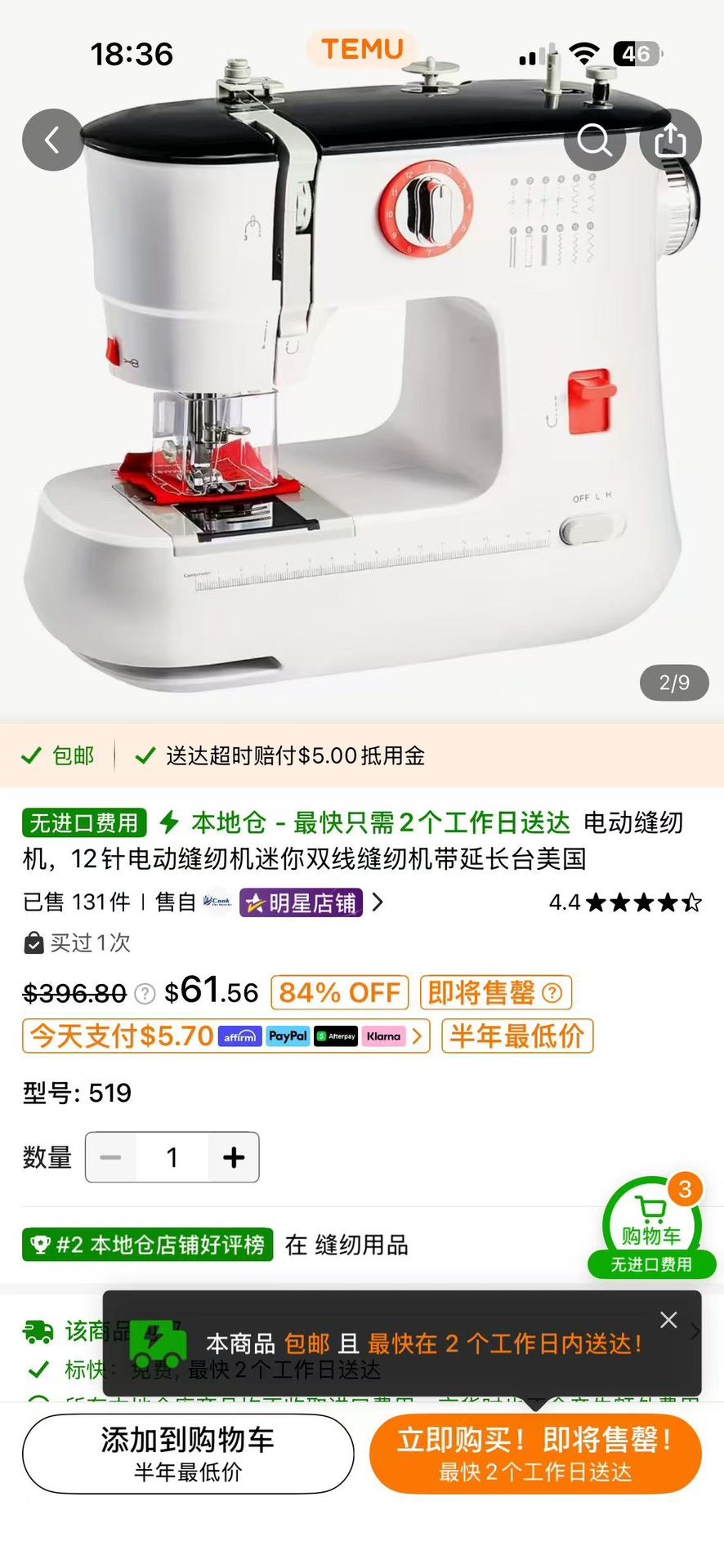 BRAND NEW SEWING MACHINE Comes with extra accessories Originally from TEMU Functions and original price in description and pictures