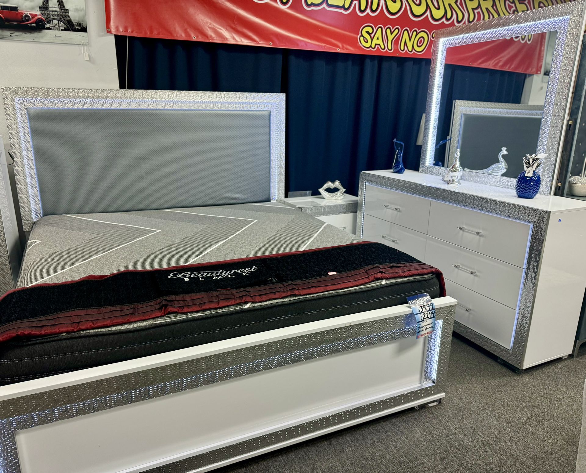 Bedroom Furniture Package🚨Beautiful White 5pc Bed Set With One Nightstand & Mattress On Sale $1999