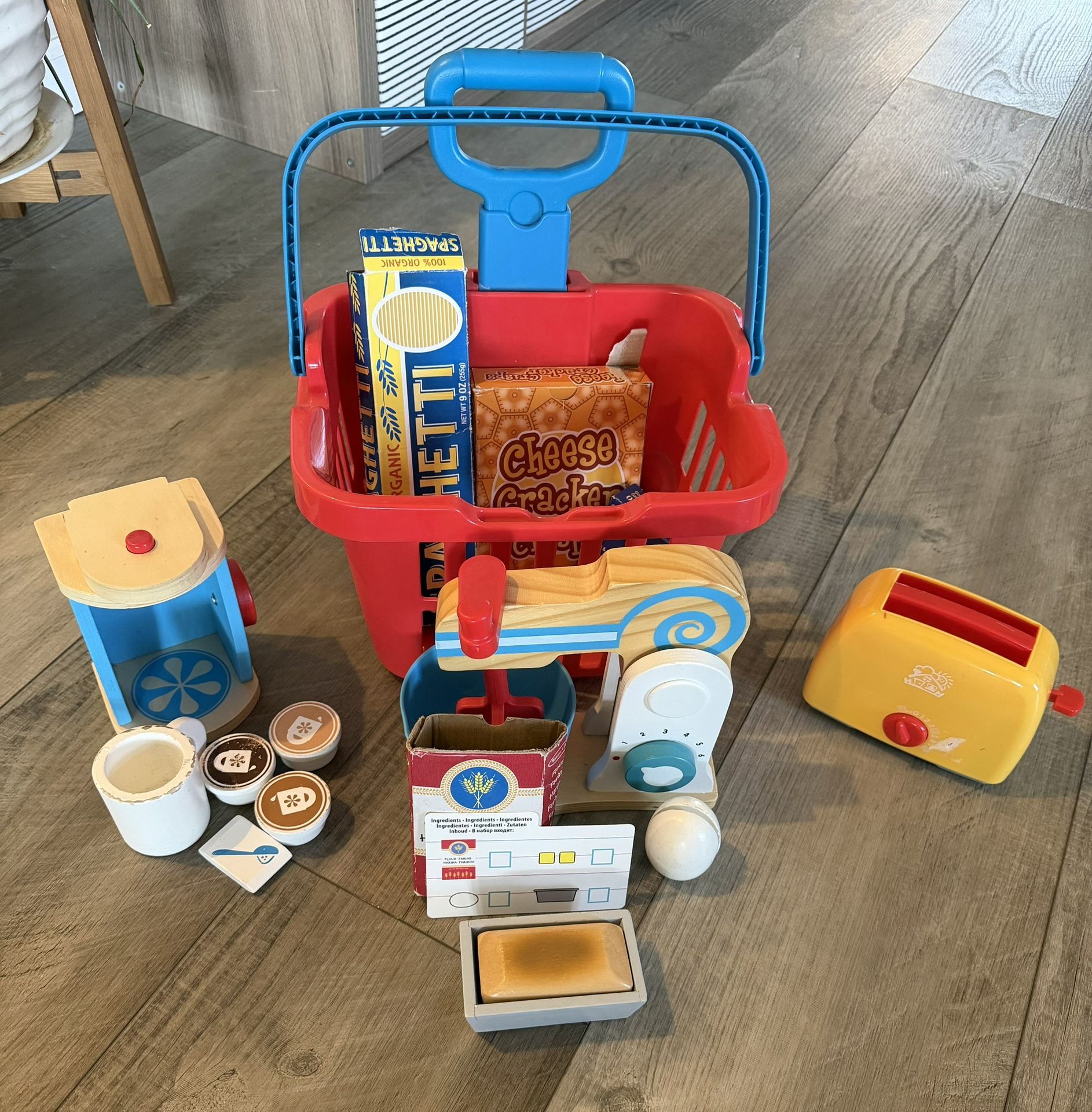 Small grocery basket on wheels. Few boxes or fake food. Mixer set (almost complete). Coffee maker set (missing some pieces) First come first serve. Pick up only. Located by Rio Rancho event center.