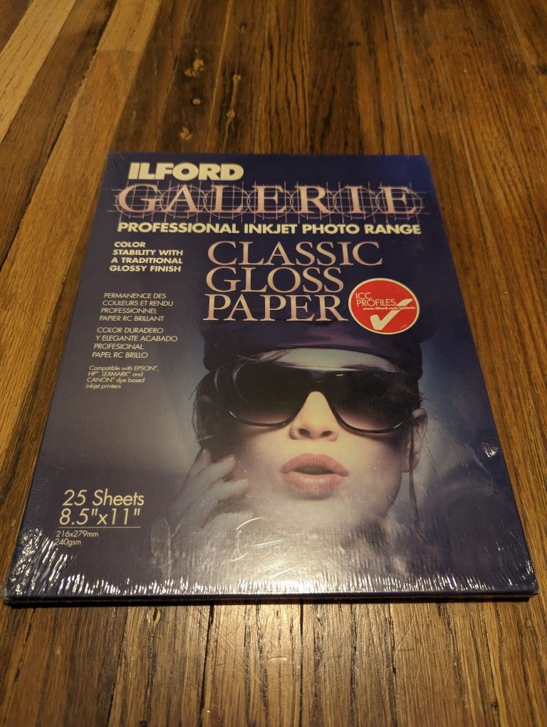 Ilford Galerie Classic Gloss Professional Inkjet Photo Paper 8.5x11 Color Stability with Classic Gloss Finish True feel of a real photograph Excellent image stabilitt Superb photographic image quality Each Pack Contains 25sheets Available: 20 Qty Compatible with Epson, HP, Lexmark, and Canon Printers