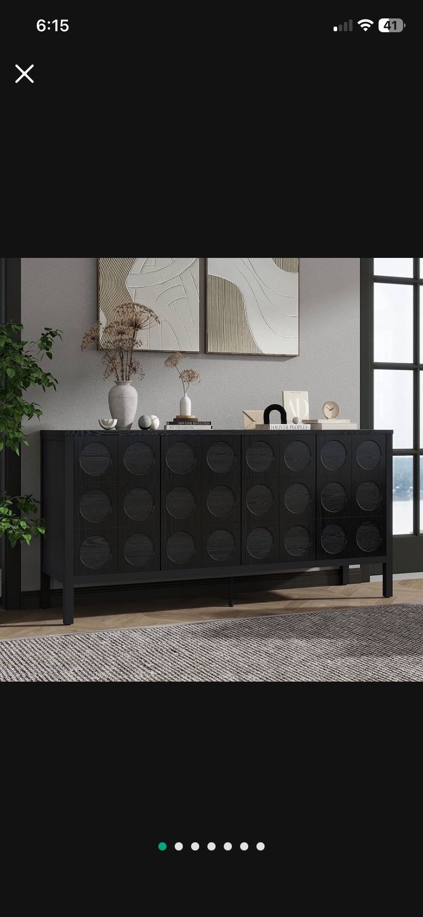 Modern Storage Buffet Cabinet with Unique Geometric Circle Door Design, Solid Wood Sideboard with Adjustable Shelves, Black