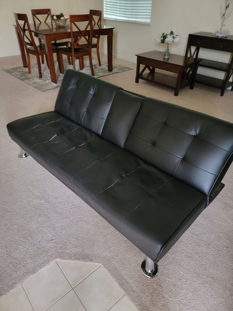A used futon. Has some wear. Folding mechanism still works. Needs a little cleaning, former owner had kids. $25 or best offer.