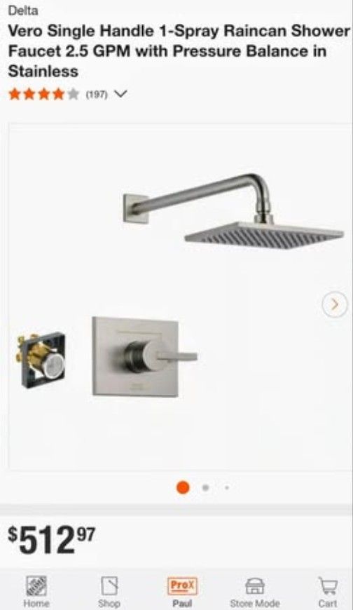 *Brand New* Delta Vero Single Handle 1-Spray Raincan Shower Faucet 2.5 GPM with Pressure Balance in Stainless Model: FVS14253-SS Currently listed for $513 + tax at Home Depot Will provide a discount when purchasing multiple units. Pick up available at: Naperville (by Washington St and Naper Blvd) Darien (by Carriage Greens Golf Course) Westchester (by Cermak / Mannheim) $140 Thanks, Paul 630 x 202 __8925 Highlights * Delta shower valve included with shower faucet trim kit * 2.50 gpm at 80 psi, 9.5 L/min at 550 kPa * Monitor pressure balance valve keeps water temperature within a safe ±3° F (±1.6° C), helping to protect you from sudden changes in hot or cold water pressure * Full body spray provides a steady, full-coverage spray perfect for every shower need * Soft, rubber Touch-Clean spray holes allow you to easily wipe away calcium and lime build-up from the spray face of your shower head and hand shower with the touch of a finger