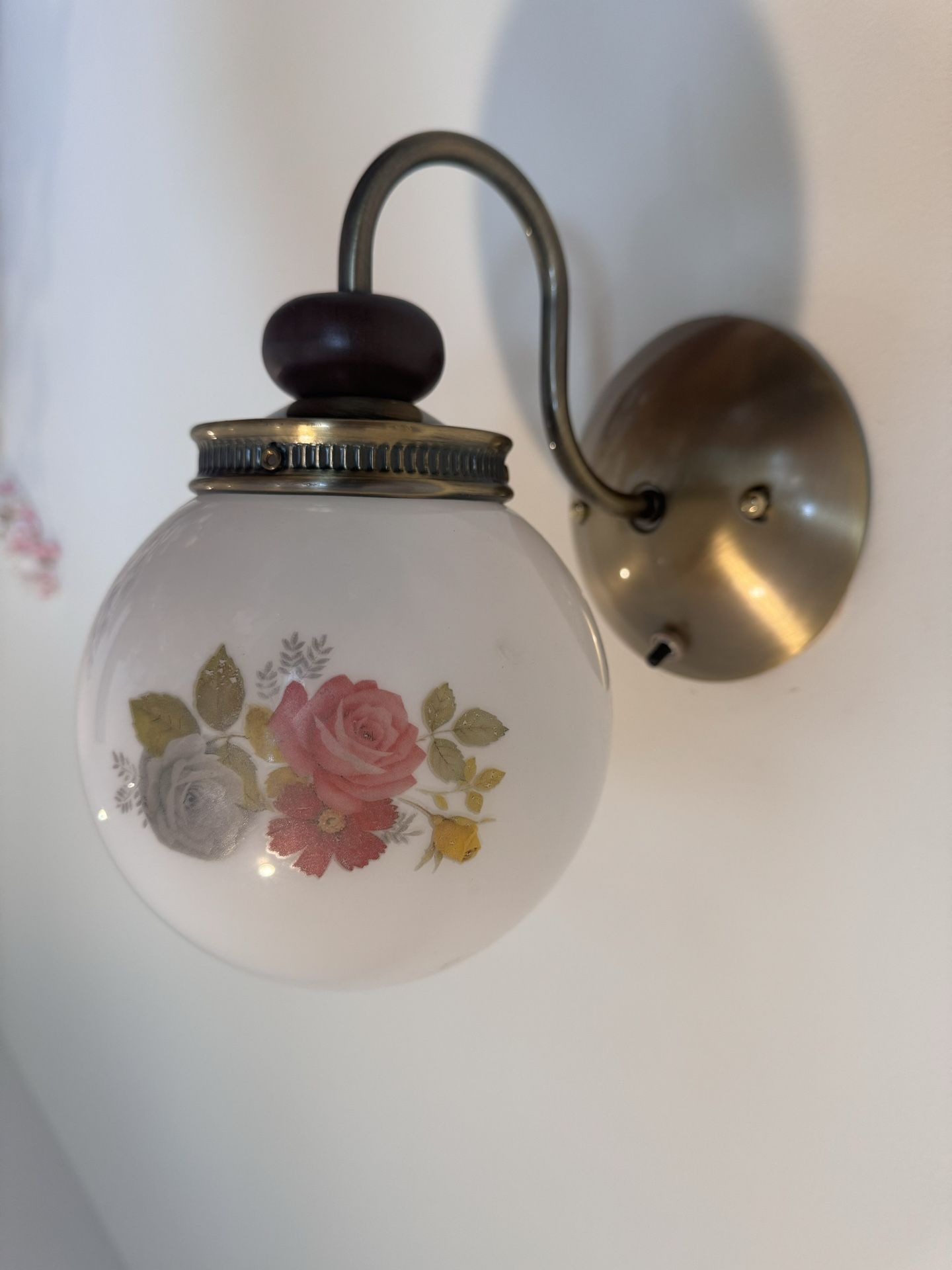 Vintage NOS Progress Lighting #3181 Antique Brass w/ White & Floral globe.