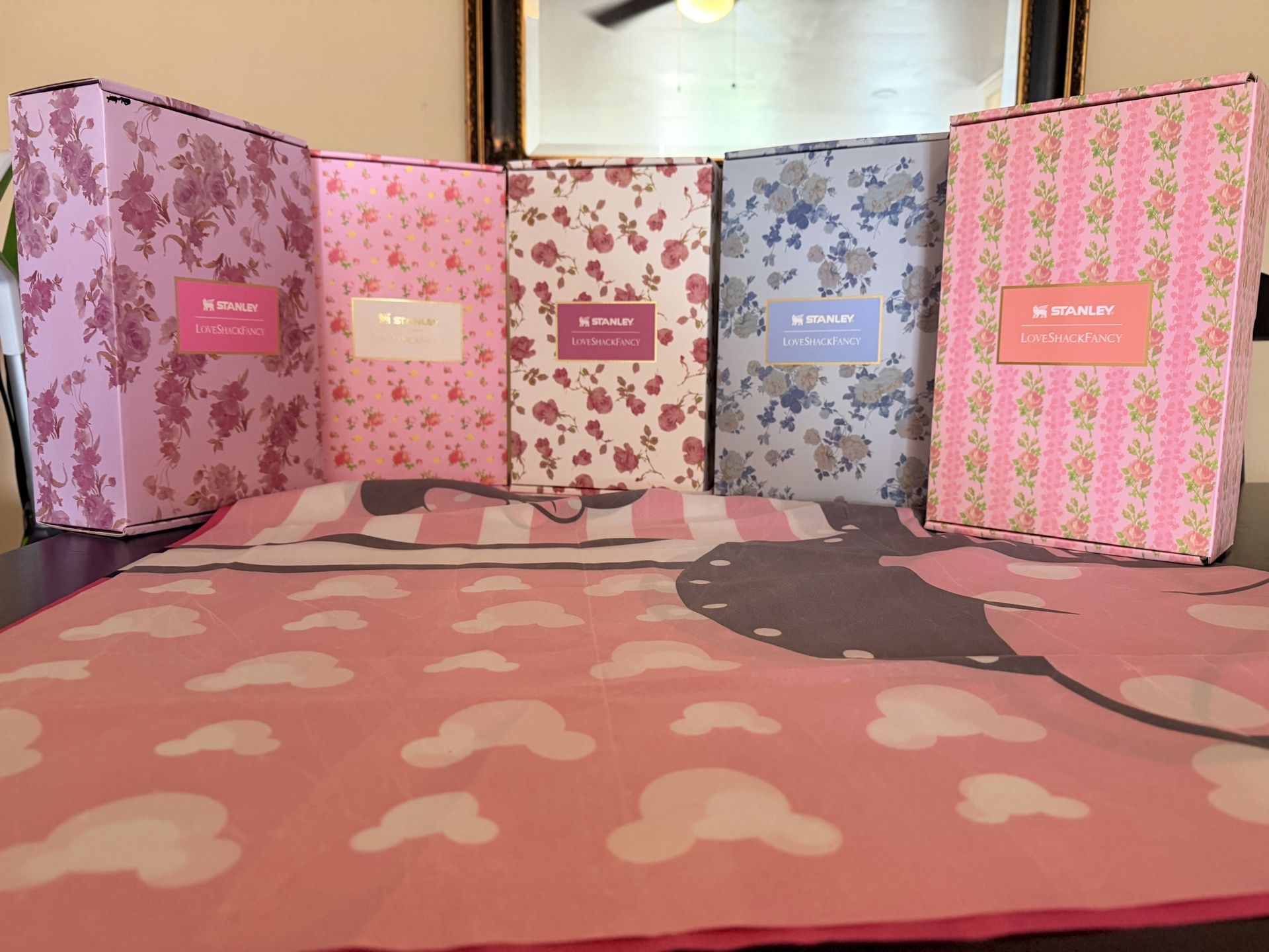 Authentic Stanley x LoveShackFancy 40oz β New in Box ππΈ Limited edition collab! Brand new, comes in original floral packaging. Super hard to find β¨ Gorgeous lavender floral print with gold detailing. Not a dupe β 100% authentic Stanley release. Perfect gift or collector piece!
