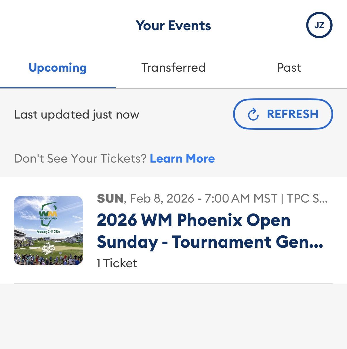 2 Single Waste Management Open Tickets Sunday