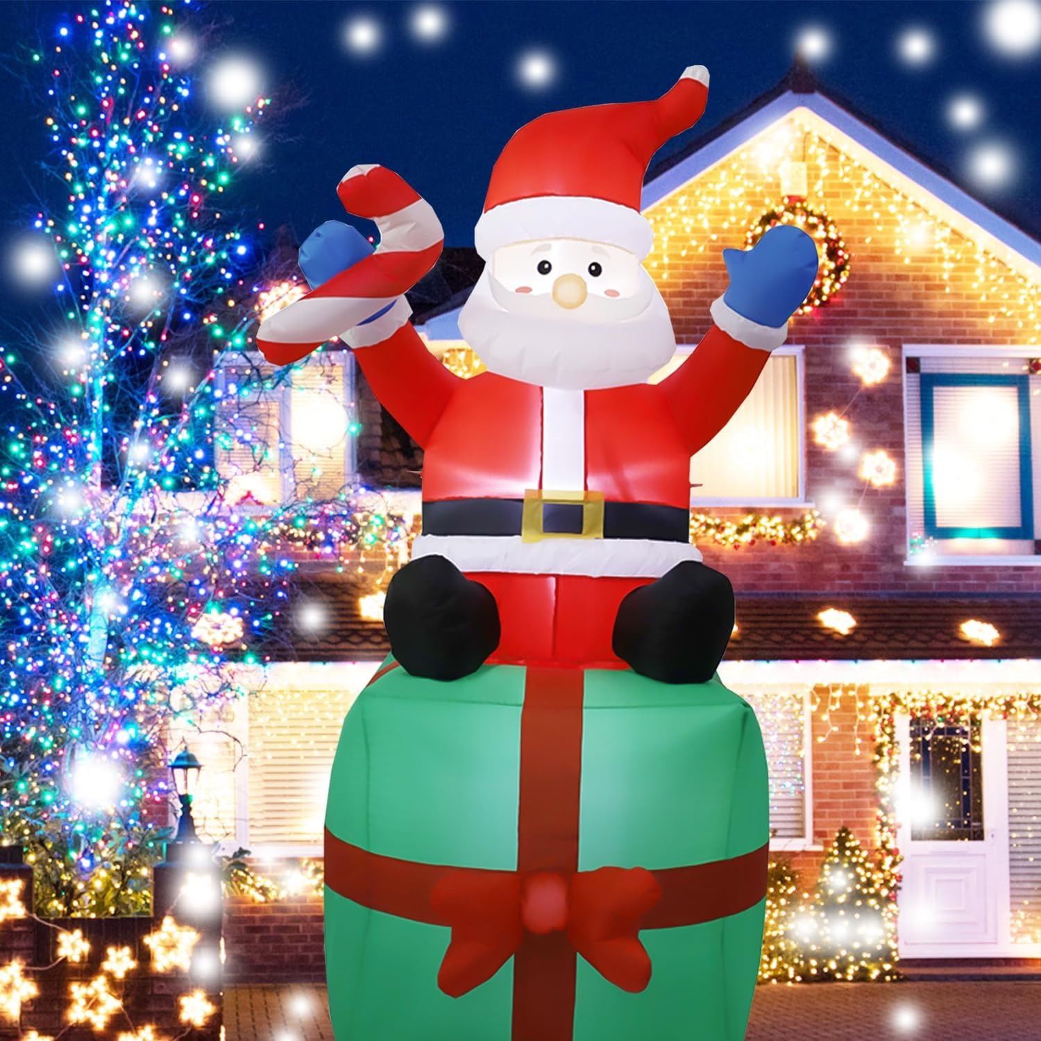 Christmas Inflatable Yard Decorations, 6FT Blow Up Cute Santa Claus Sitting on Gift Box Built in LED Lights, Indoor Outdoor Holiday Xmas Decor for Garden Party Home Patio Lawn Porch