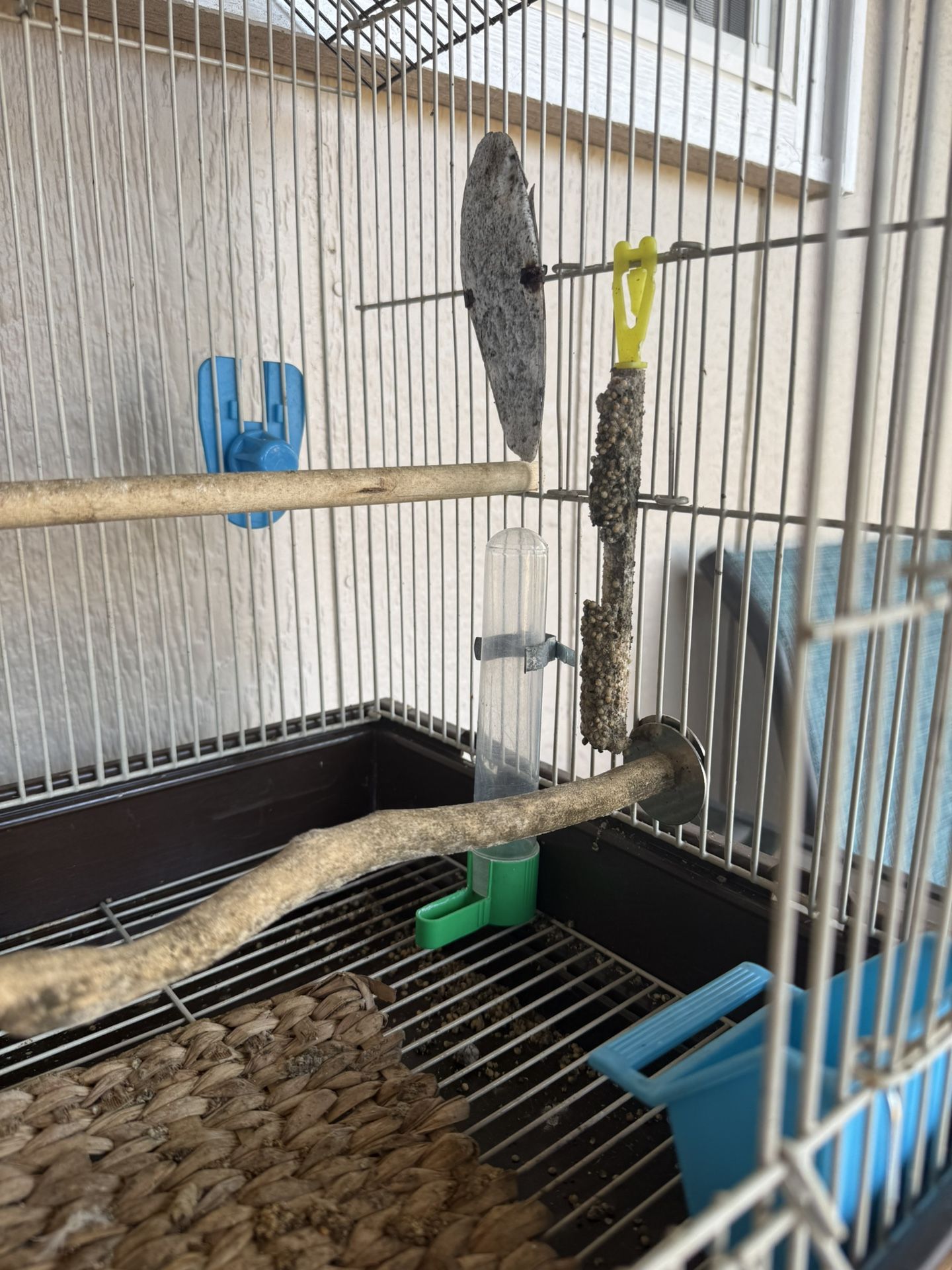 Small top wing bird cage with all necessary accessories. Includes multiple dishes, waterers, cuddle bone, nest, and toys. My bird passed away and I would like to sell to a new owner.