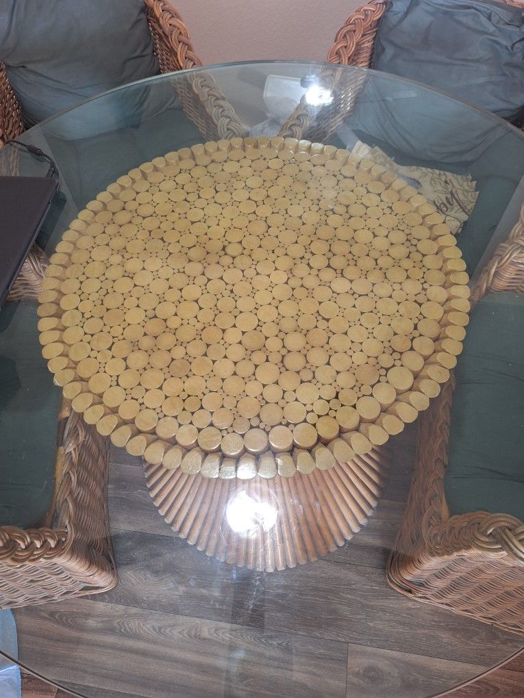 Beautiful weaved table. 1" thick glass in great condition.