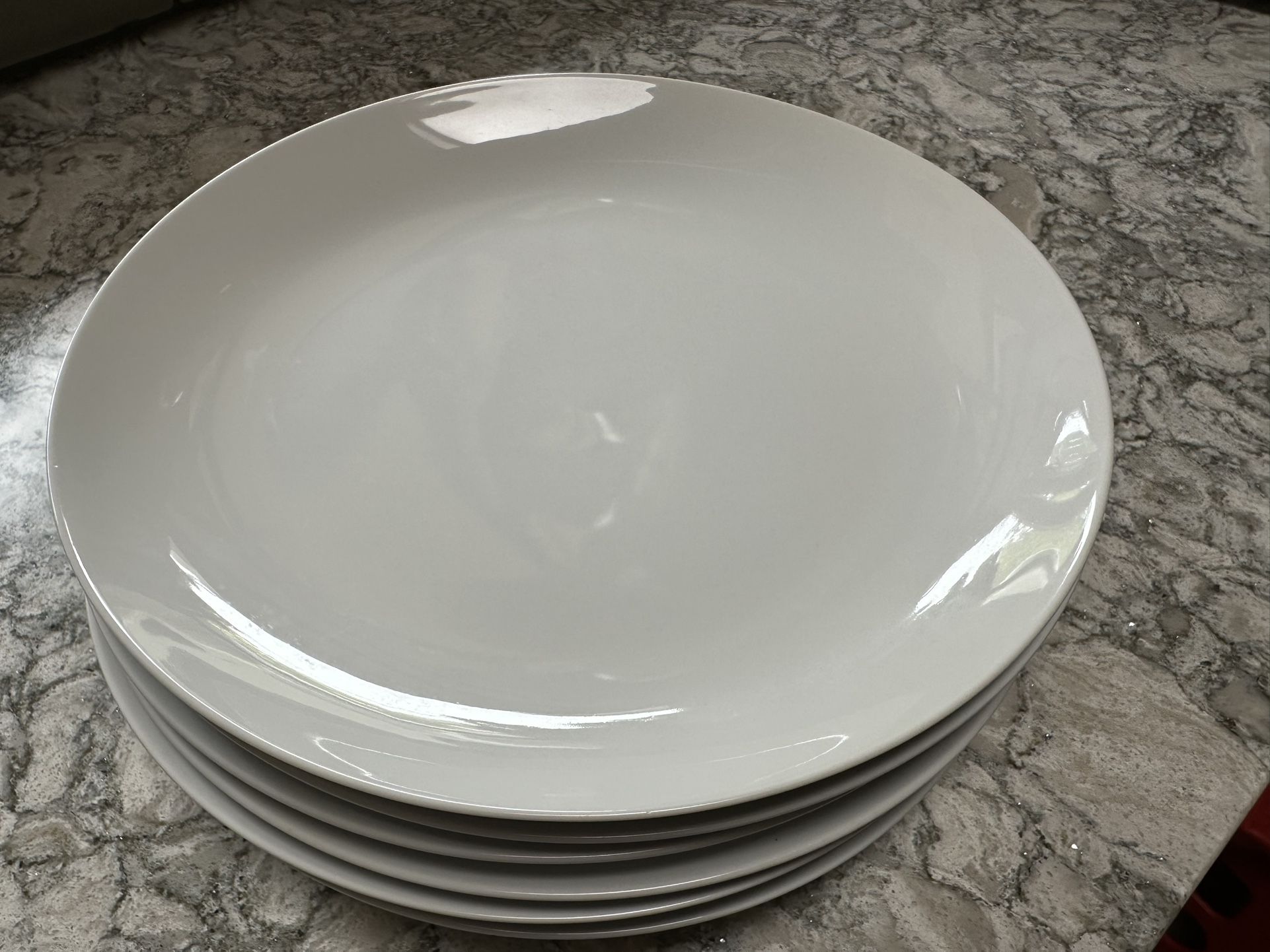 Brand new 10.5" dinner plates. Sold as a set of 6. Sells new for $37-$40. per plate. Crisp white oversized coupe shape in durable porcelain. Perfect for casual everyday, or sophisticated for formal dinners.