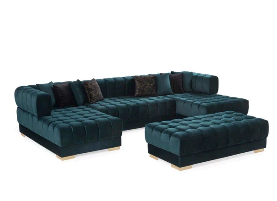 Ariana Velvet Green Double Chaise Sectional.