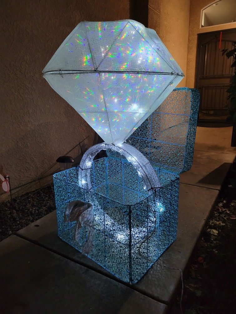 Well gents, she said she wanted a ring for Christmas. Imagine her surprise when you put this bad boy in the front yard! Home Accents Holiday LED outdoor Christmas decoration. Diamond sparkling ring in gift box. LEDs twinkle and sparkle. About 4ft tall. New, setup for photos and stored away