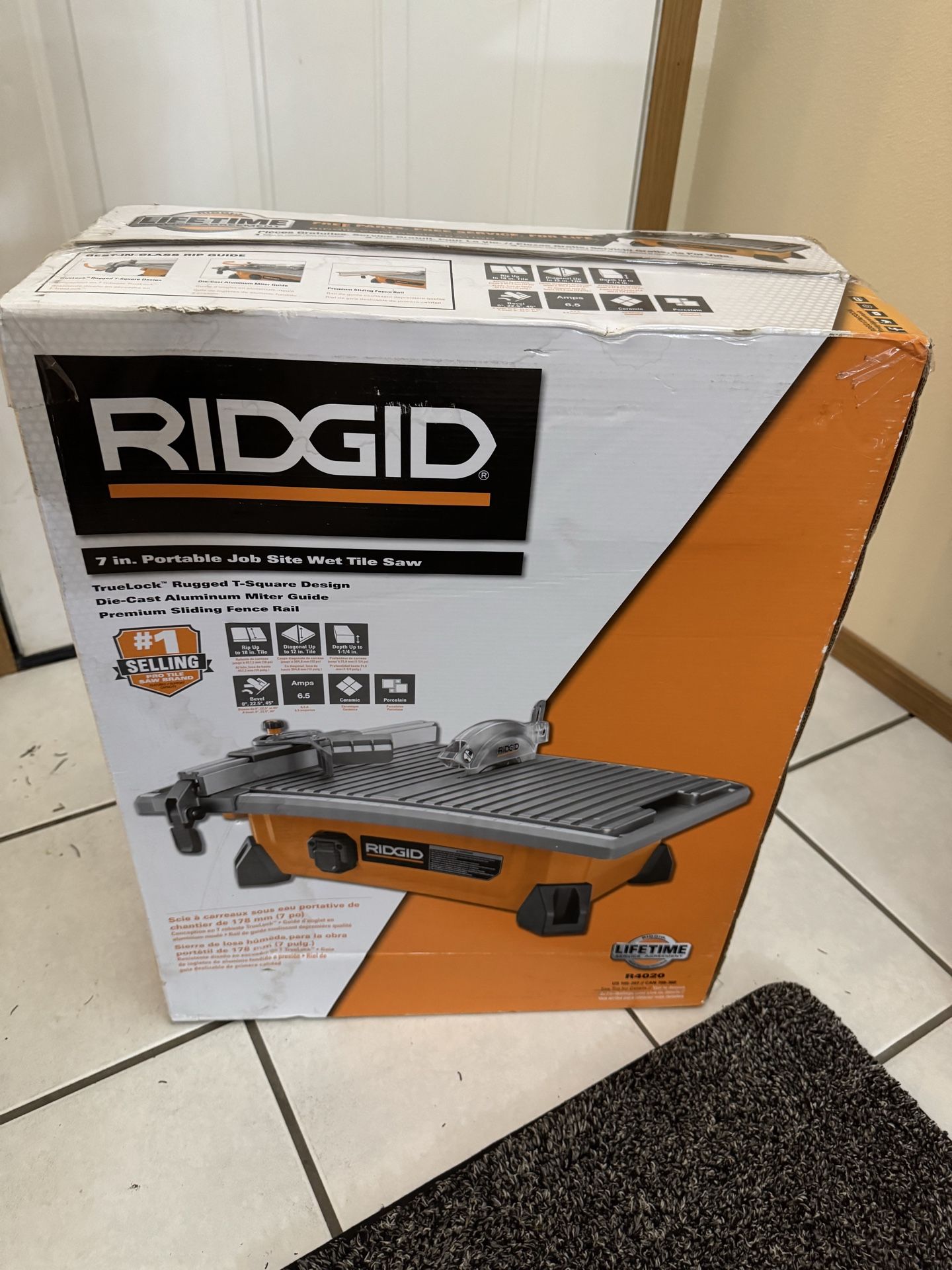 New in Box RIDGID 7” portable job site wet tile saw #R4020