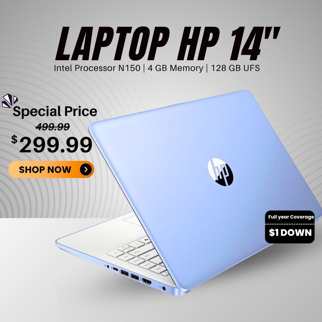 π» HP 14β Laptop (Brand New) β Just $299 or $1 Down! Save $200 + 1-Year Warranty
