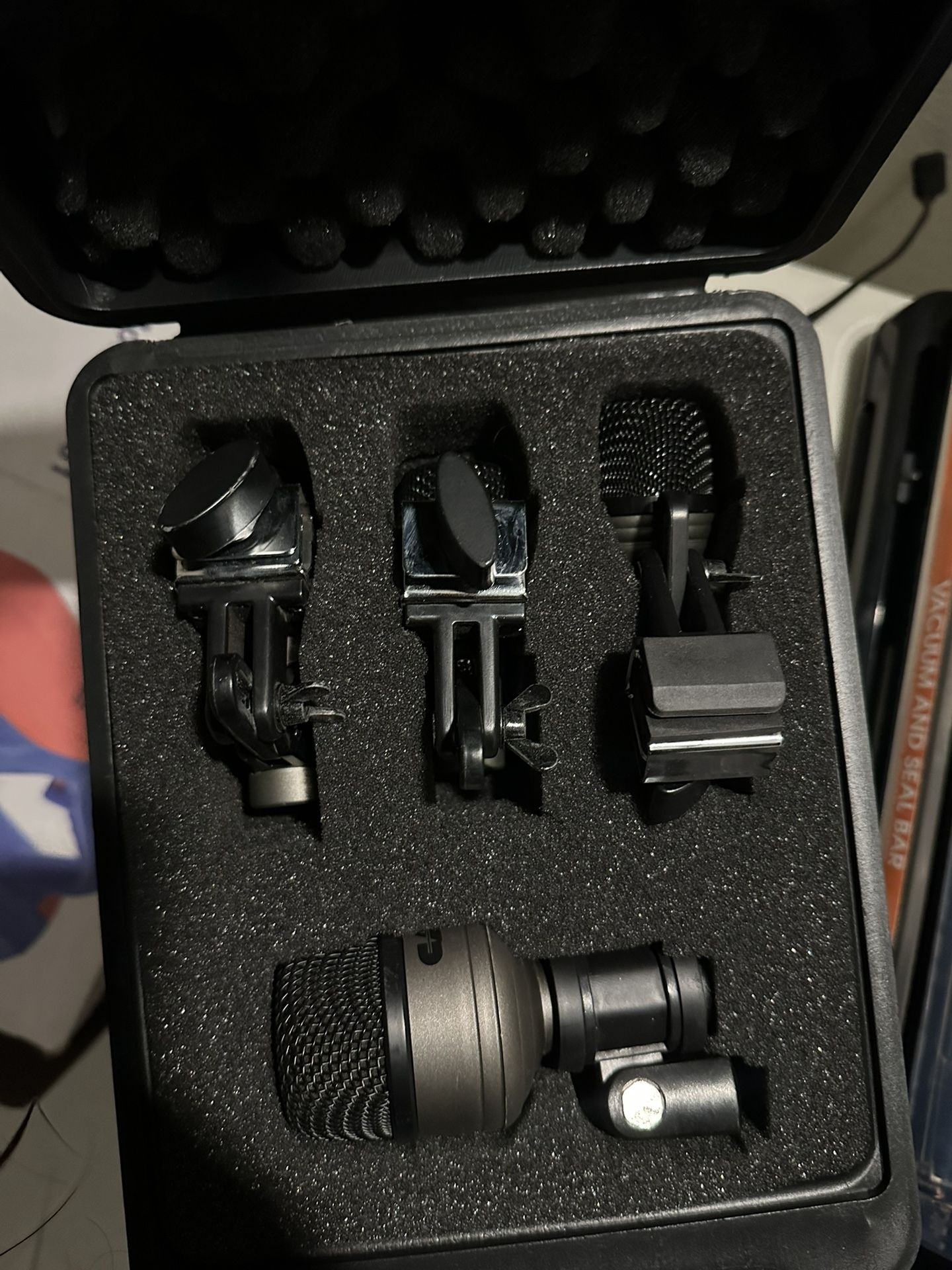 Full studio set up for a drum set. First come first serve Kick , Tom’s , overheads and snare microphones all included