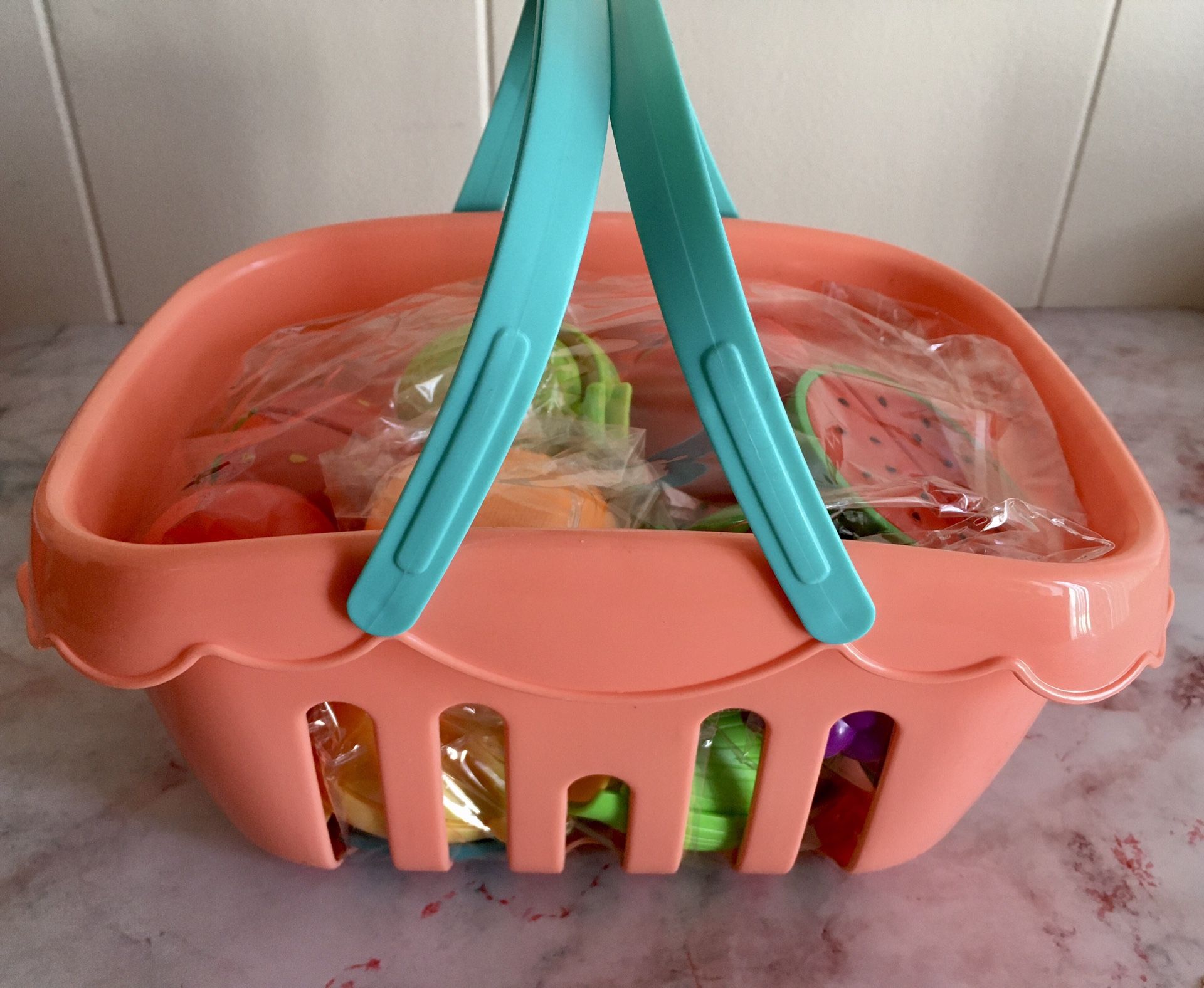 Children’s 20 Piece Play Food with Basket. Includes Fruits & Vegetables, Plates and Play Knife. For Ages 3+. Measures 11” x 7” x 9”. NWT. #playfood #toys #fruittoys #vegetabletoys #pretendfood