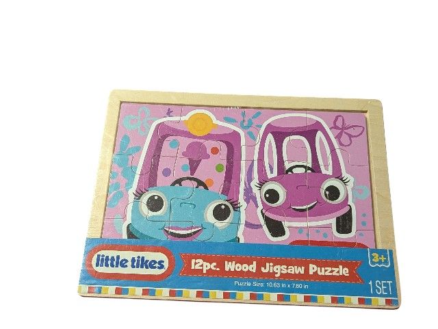 From Little Tykes, 12-piece wood jigsaw puzzle featuring cars, sealed, new.