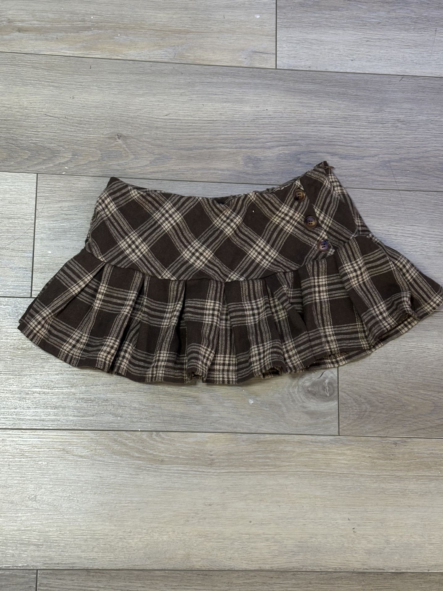 Light brown / brown plaid pattern mini skirt (With shorts under)