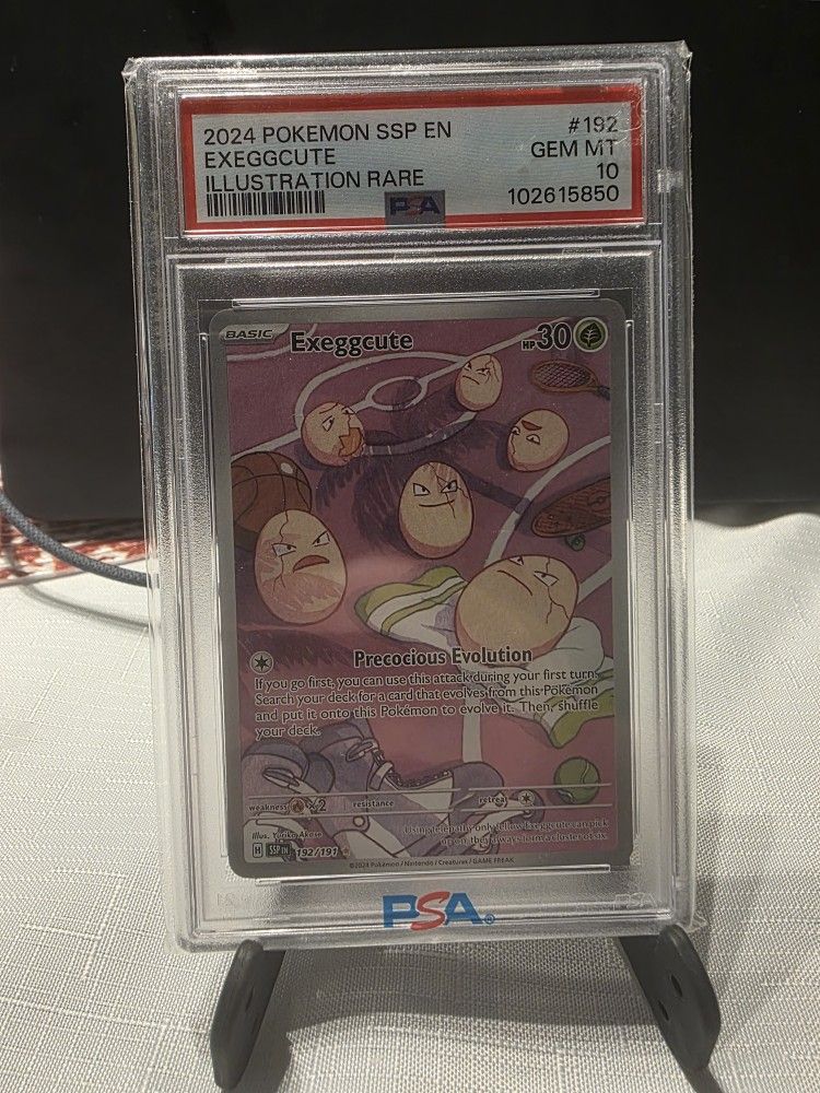 A fun and unique Illustration Rare featuring Exeggcute in a playful sports‑themed scene. PSA 10 ensures top‑tier quality. Notes: Great for collectors of quirky or artistic cards.