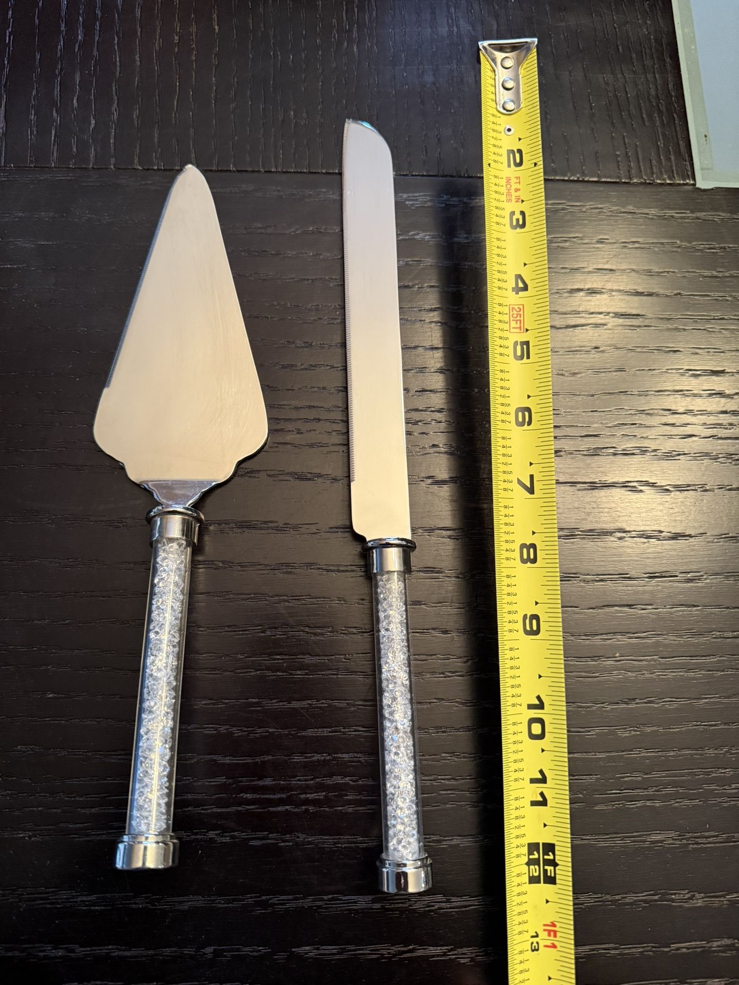 Wedding cake knife and spatula for sale. Handle has “crystals “ within