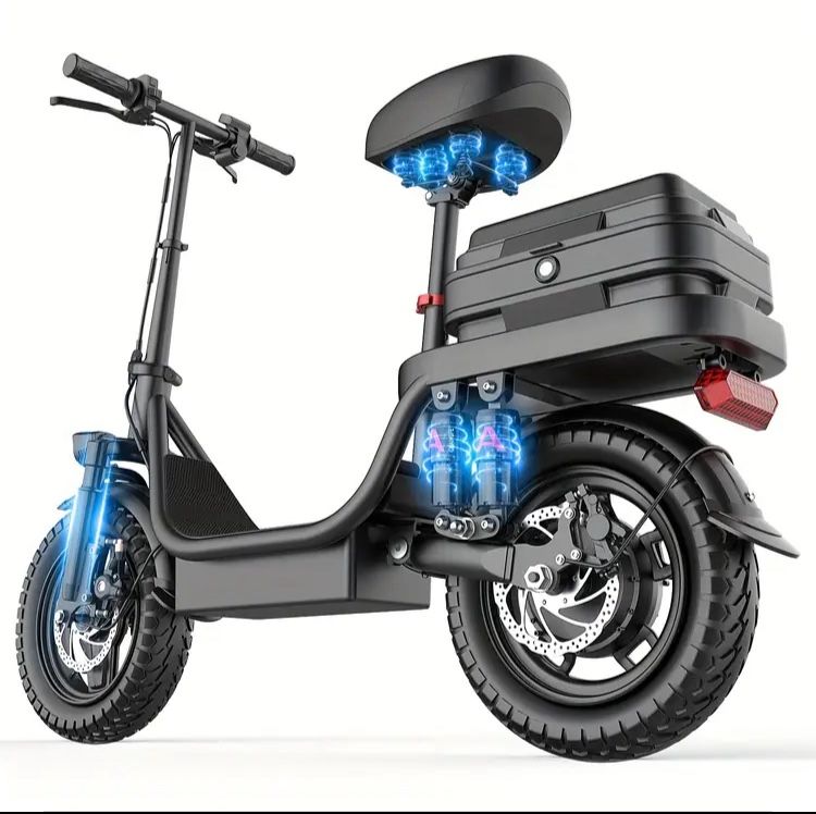 Electric Scooter with Seat for Adult, Max 40 miles Range, 20mph Power By 740W Peak Motor, Comfortable 14" Pneumatic Tire And Wider Deck & Height Adujustable Seat with Removable Storage Box
