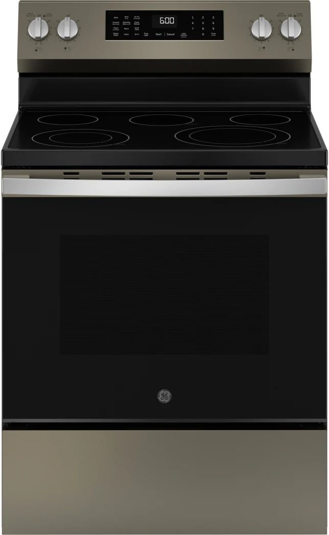 Description 30 Inch Freestanding Electric Smart Range with 5 Smoothtop Elements The 600 Series GE Electric Range is perfect for any kitchen, featuring a 5-element cooktop for sautéing, boiling water, making soups, and warming on low heat. The 5.3 cu. ft. oven capacity features a 4-pass bake element on the bottom and a 4-pass broil element on top. A removable storage drawer keeps big trays, cookware, and kitchen accessories organized for easy access while saving cabinet space. You can adjust the two nickel oven racks to your preferred baking position, while the one-piece upswept cooktop and Steam Clean with EasyWash™ Oven Tray make cleaning a breeze. With built-in WiFi and the SmartHQ™ App, you can manage your oven remotely from your smartphone or tablet. This Electric Range also includes Fifth Element Warming Zone, No Preheat Fresh Reheat, and Express Preheat to help you cook more efficiently. Features 5 Smoothtop Elements This expansive 5 burner electric cooktop offers a flexible cooking solution that accommodates any pot or pan and is a great addition to any kitchen space. 5.3 cu. ft. Convection Oven Cook an entire meal at once with room to spare in this oven with 5.3 cubic foot capacity. 12"/9" Power Boil™ Burner Use this Power Boil™ burner as a 12" or 9" element for rapid heat and flexibility on all sized cookware. 9"/6" Power Boil™ Burner Easily adjust to any size pot or pan with a convertible 6" and 9" element that makes it easy to boil water faster. Warming Zone A convenient low-heat warming zone provides perfect temperature control for foods on the cooktop. Storage Drawer This model features a removable oven storage drawer that offers the perfect place to store cookware and other kitchen accessories No Preheat Air Fry No preheat air frying is a great way to get crispier versions of your favorite foods in less time. No Preheat Fresh Reheat Perfect for leftovers from the night before, the to-go box from your favorite restaurant or refreshing soggy fries to ideal crispiness, this no preheat mode saves you time and delivers flawless results. No Preheat Pizza Specifically designed to cook your frozen pizza, this no preheat option is a time saver and a great way to get dinner on the table fast. Express Preheat Get food on the table quicker thanks to a fast, preheat oven. In just 7* minutes, you have a perfectly preheated oven. *Preheats oven in just 7 minutes, bake mode to preheat beep, 350 degrees, one standard rack. Convection Cook and brown foods more evenly with convection cooking that uses a rear fan to circulate hot air. Hidden Bake Element Enjoy a clean and sleek interior that eliminates hard-to-reach areas thanks to a concealed oven element. Built-In WiFi Built-in WiFi and the SmartHQ app gives you oven control functions like remote preheat, the ability to monitor and change oven temperature, turn off your oven and more! Sabbath Mode This oven with Sabbath Mode gives users the ability to modify or disable certain features and comply with religious restrictions. Steam Clean Leave your EasyWash™ Oven Tray inside to use the steam clean oven function. Save time and effort by steam-cleaning the oven after use without the need for special water, kits or extra steps. EasyWash™ Oven Tray Oven cleaning is easier than ever with the industry-first EasyWash™ Oven Tray. This enameled tray is easily removed and rinsed clean in the sink or, for bigger messes, guaranteed to fit in all GE Appliances dishwashers. Interior Oven Light Easily view your delicious dinner creations inside this oven illuminated with a powerful oven light. 2 Nickel Racks This electric range with nickel racks provides a durable design that handles heavy baking dishes with ease. New Easy-to-Use Controls Updated and improved controls allow for easy navigation of all cooking options and modes. OU/CRC Enhanced Shabbos Mode The Shabbos Keeper connects to your oven to automatically enable Shabbos compatible modes each week and before every holiday (Shabbos Keeper sold separately). Additional Features Proofing Mode Timer Bluetooth Chef Connect (App) Delay Start (App) Big View Oven Window Sabbath Mode: Yes Fingerprint Resistant: Yes Cooktop: Smoothtop Drawer: Storage Width: 30 Inch Depth: 27 7/8 Inch Height: 47 1/4 Inch Number of Burners: 5 Primary Oven Capacity: 5.3 Cu. Ft. Hot Surface Indicator Light: Yes Convection: Yes Self-Cleaning: No Steam Clean: Yes Temperature Probe: No