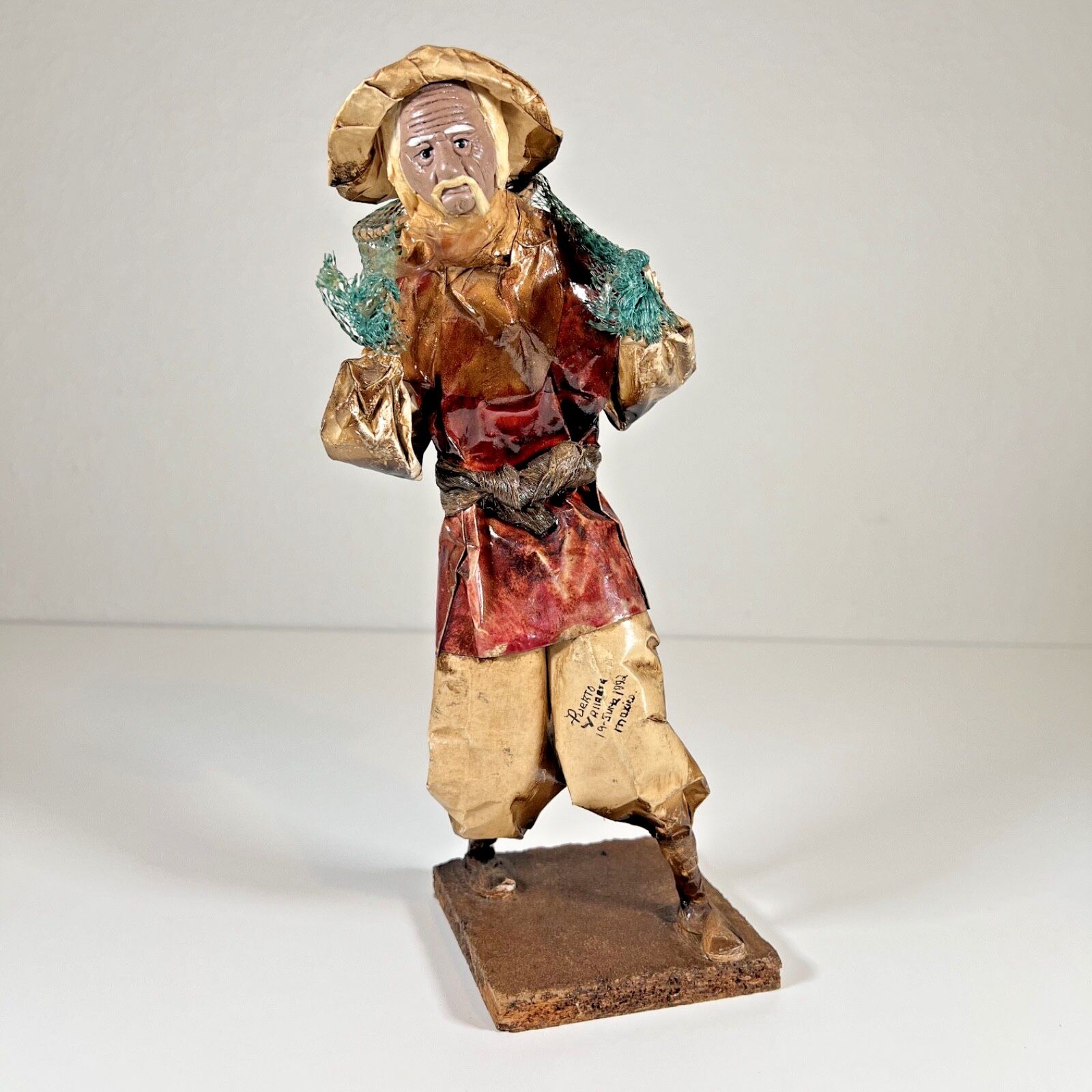 Vintage Mexican Folk Art Paper Mache Man Figurine 1992 Puerto Vallarta