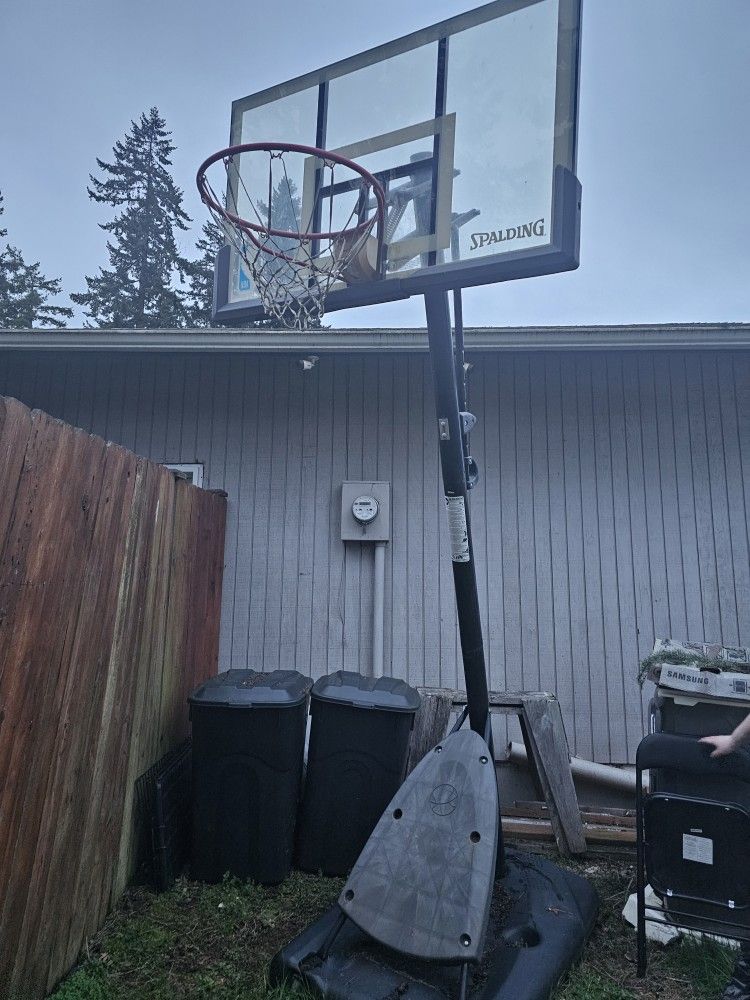 Nice freestanding basketball hoop. Fill the base with sand or water and its game time. Crack in top of the base, does not affect anything just more of cosmetic issue $100 firm
