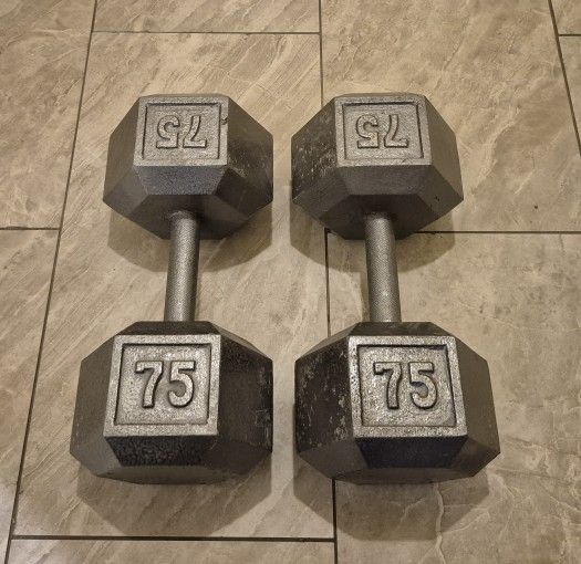 Dumbbell weights 75 lbs. They are in good condition. Feel free to ask questions.