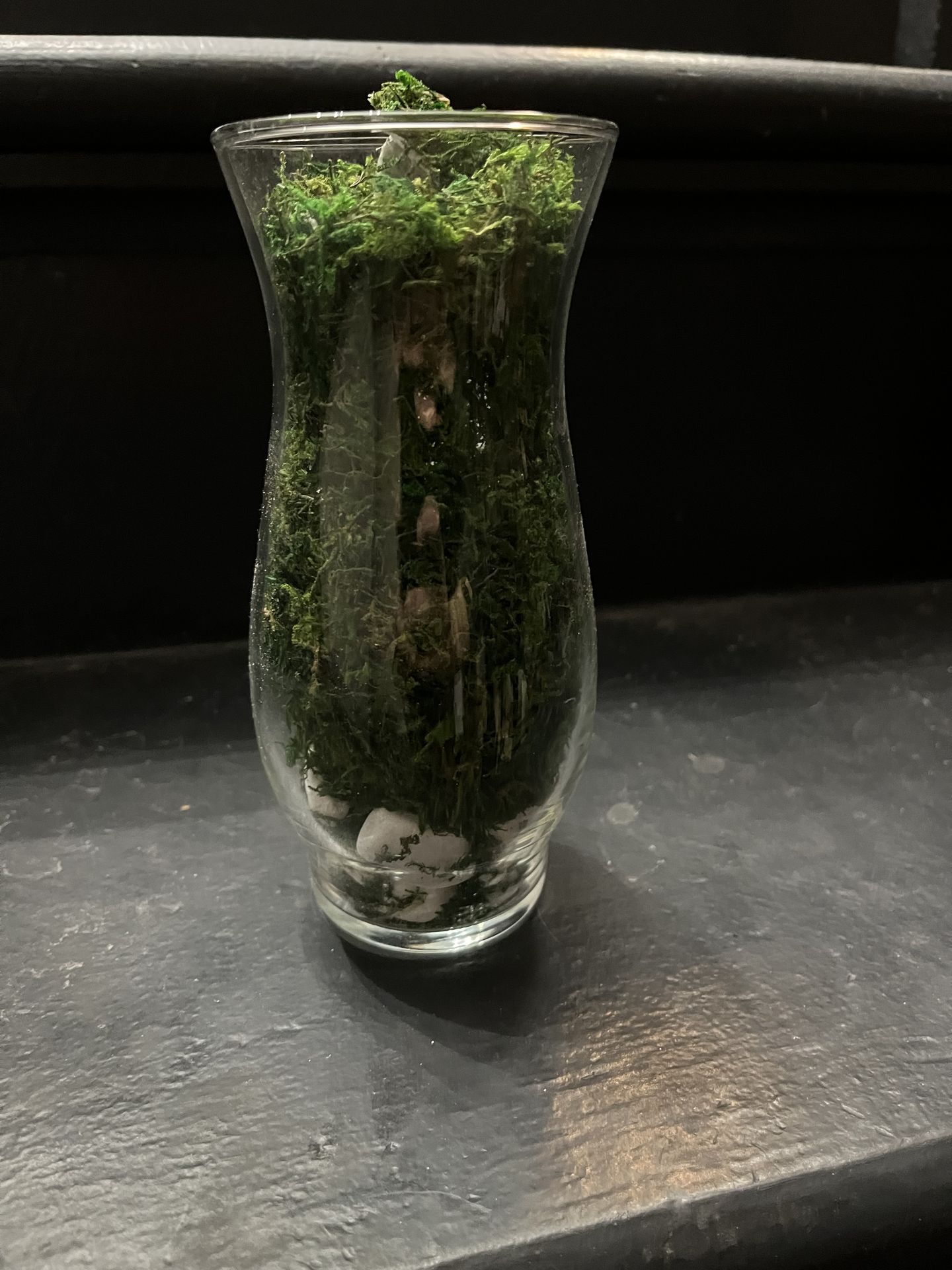 Decorative vases for dried or artificial flowers. 12 total. Contains moss and river stones in green and white. If looking to individual vases $3/each. Otherwise $24 for the dozen.