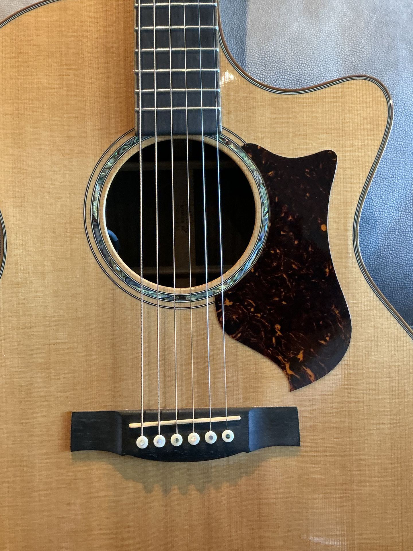 Martin Performing Artist Acoustic Electric Guitar with Case Built in Tuner Ebony Fretboard Fishman F1 Aura Electronics Grand Performance body with rounded cutaway Spruce top with scalloped bracing Indian rosewood back and sides Ovangkol body, headstock and fretboard binding 14-fret mahogany neck with squared headstock Performing Artist neck profile Headstock overlay features abalone "CF Martin" block logo 20-fret ebony fingerboard Abalone arrows & slotted square inlays Abalone soundhole rosette Tortoise plastic pickguard Gold "Martin" modern diecast tuners Factory Fishman F1 Aura pickup system 1-3/4" nut, 25.4" scale 15-3/4" lower bout, 4-3/8" body depth at endblock With brown OHSC (burgundy lining)