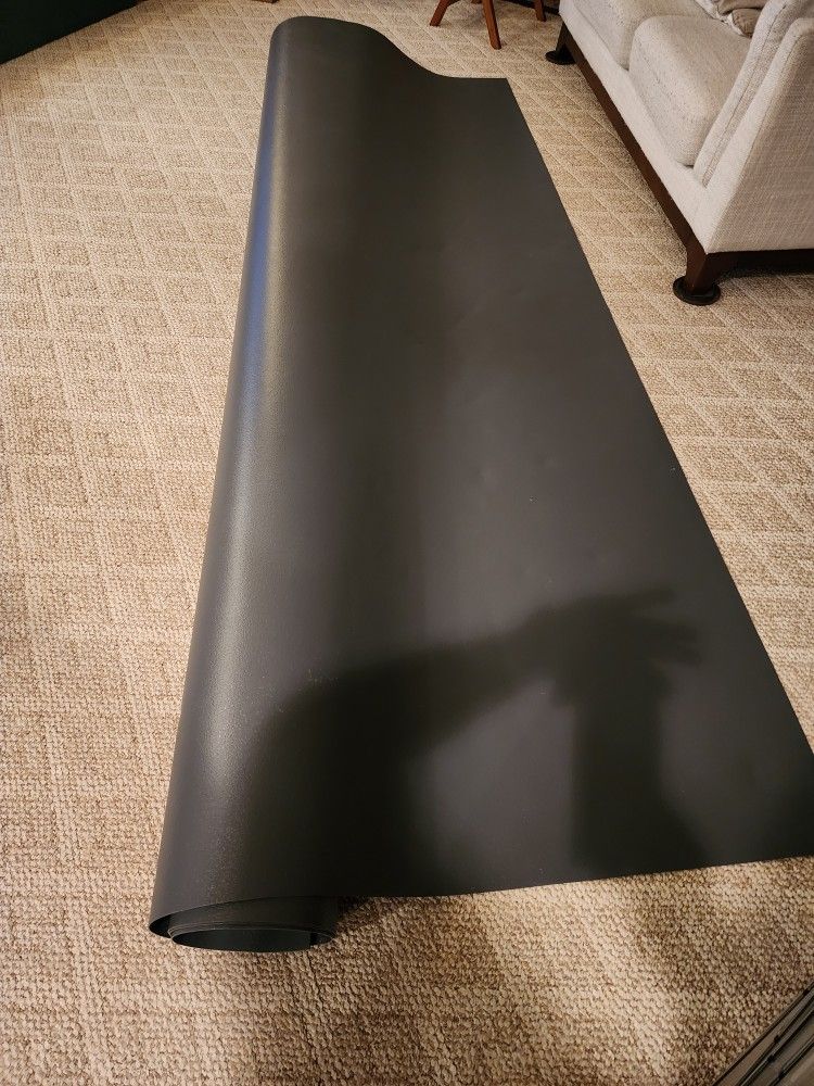 We got this floor to fill a room we were using for foster pets, but we no longer need it. It has been cleaned and disinfected after our last "guests". It served well to protect our carpet and provide a much more easily cleaned surface for animals. I suppose it could also work well to put on a hard surface for a home gym or something of that nature. One side is a bumpy texture which provides good grip, the other is smooth. It's quite large as you can see in the description. Rolled up, it is still about 8.5' long. We're giving this away in case someone wants it. I suppose you could cut it down to a smaller size if you have a use for it.