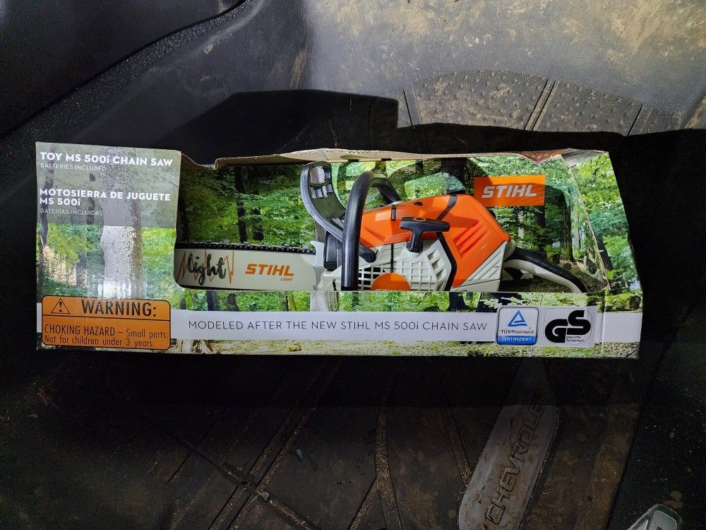 Toy stihl msi 500i chainsaw for kids 3 years old and up rubber chain actually rotates and you get an extra chain. Awesome christmas gift for child. $50.00